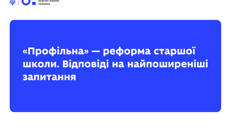 «Профільна» — реформа старшої школи. Відповіді на найпоширеніші запитанняЗ 1 вересня 2026 року розпочинається пілотний етап реформи профільної старшої школи - це логічне продовження змін, які стартували ще у 2017 році з впровадженням реформи «Нова українська школа».20 лютого 2026 10:58187 Освіта