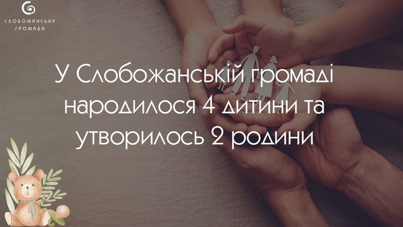 У Слобожанській громаді народилося 4 дитини та утворилось 2 родиниМинулого тижня, з 19 по 25 січня 2026 року, в межах населених пунктів Слобожанської територіальної громади народилося 1 дівчинка та 3 хлопчики.26 січня 2026 10:02145 Новини