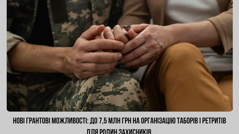 Грантова можливість: до 7,5 млн грн на організацію таборів та ретритів для родин ветеранів і ветеранокГрантова можливість: до 7,5 млн грн на організацію таборів та ретритів для родин ветеранів і ветеранок26 січня 2026 11:33110 Новини