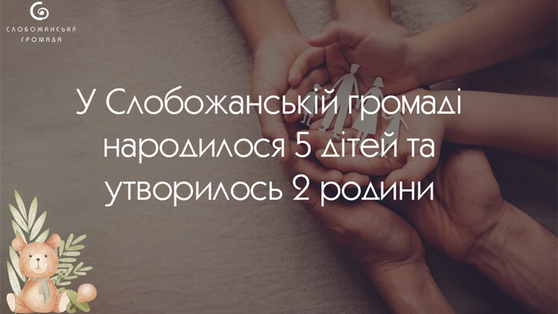 У Слобожанській громаді народилося 5 дітей та утворилось 2 родиниМинулого тижня, з 20 по 26 жовтня 2025 року, в межах населених пунктів Слобожанської територіальної громади народилося 4 дівчинки та 1 хлопчик27 жовтня 2025 08:0076 Новини