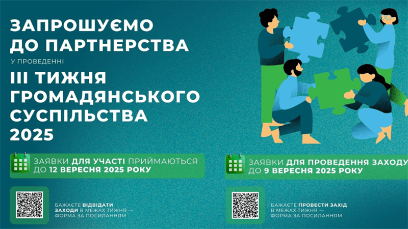 Початок підготовки до ІІІ Тижня громадянського суспільстваМіністерство культури та стратегічних комунікацій України повідомляє про початок підготовки до ІІІ Тижня громадянського суспільства26 серпня 2025 10:11