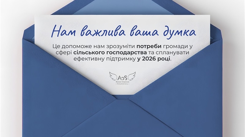 Оголошення щодо вивчення потреб у сфері сільського господарстваБЛАГОДІЙНИЙ ФОНД «ЯНГОЛИ СПАСІННЯ» проводить аналітичне дослідження стану сільського господарства на території нашої громади.24 грудня 2025 11:31191 Новини