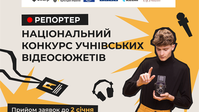 Національний конкурс «Репортер» запрошує школярів розповісти історію незламної УкраїниРозпочато прийом робіт на Національний конкурс учнівських відеосюжетів «Репортер» 2025 для школярів 9–11 класів.23 грудня 2025 12:14178 Новини