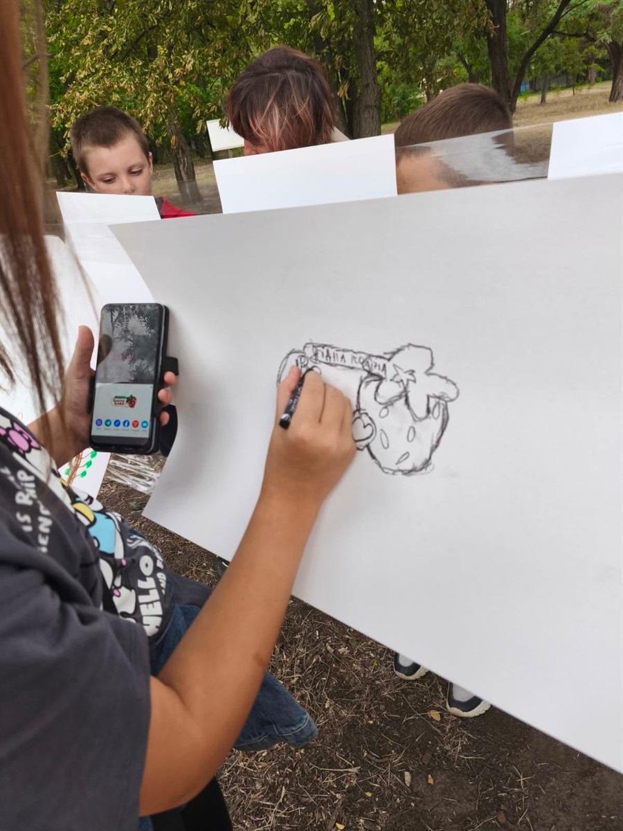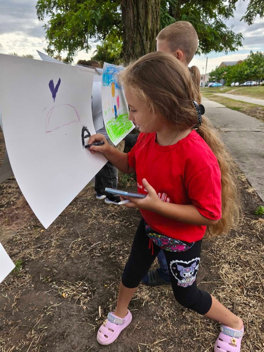 Найперше малеча проявила свою фантазію у творчій частині заходу: на великому папері, натягнутому між деревами, діти відтворювали найтепліші миті літа. У малюнках оживали море, гори, сімейні подорожі та ігри з друзями.