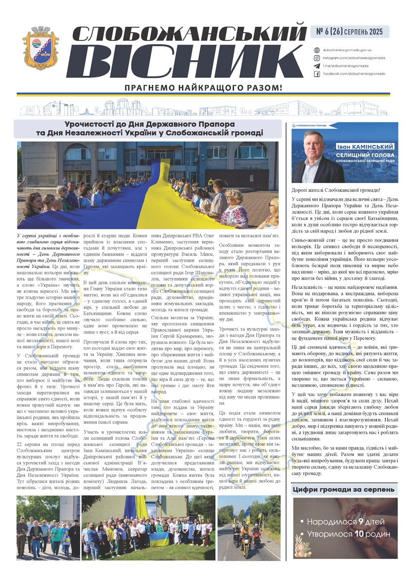 Друком вийшов 26 загалом та 6 у 2025 році номер інформаційного вісника «Слобожанський Вісник». У ньому зібрані головні події серпня в житті нашої громади.