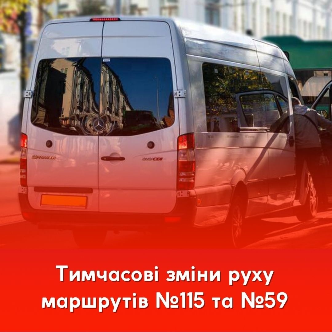 Повідомляємо, що з 5 вересня 2025 року внесено тимчасові зміни у рух маршрутних автобусів №115 та №59.