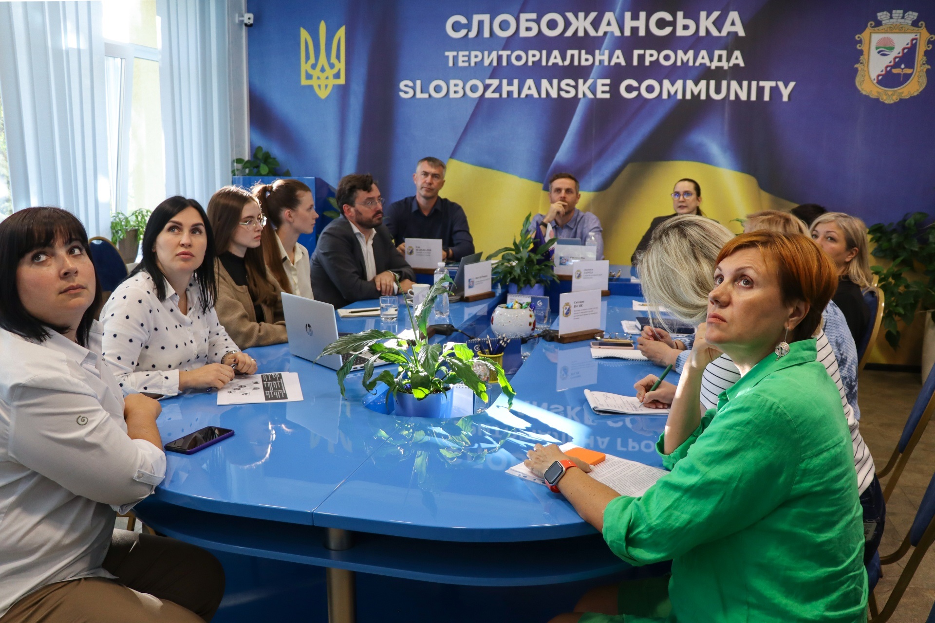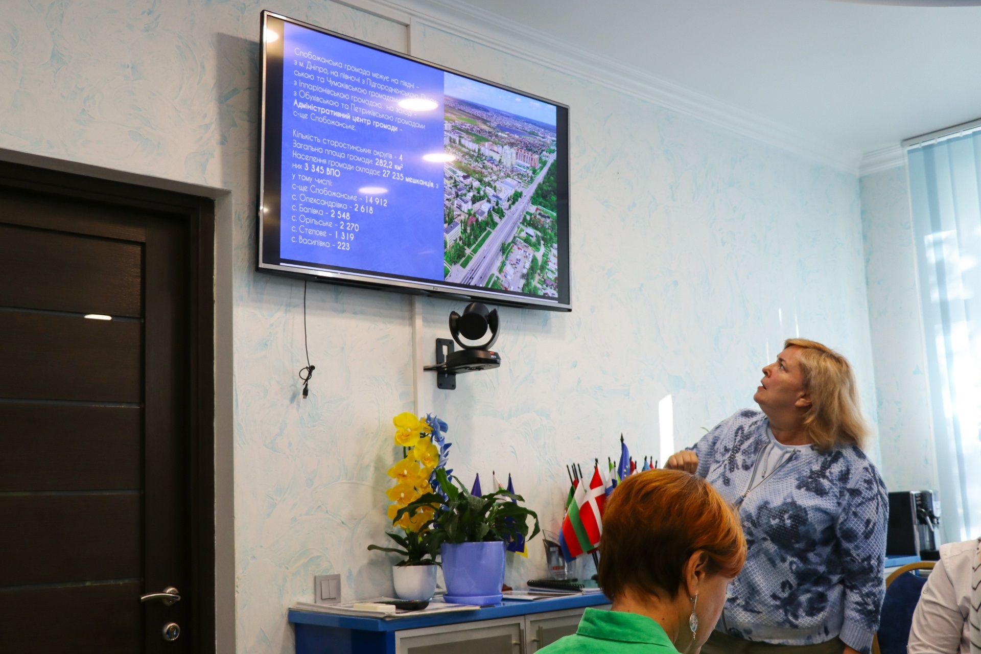 Світлана Вусик коротко розповіла про Слобожанську громаду, відзначила організацію роботи медичних закладів, які забезпечують надання первинної та спеціалізованої допомоги населенню. Також підкреслила значення житлово-комунальної сфери, що відповідає за стабільне функціонування інфраструктури та створення комфортних умов для жителів. Розповіла про культурний та спортивний напрямок, як можливість емоційного розвантаження та виховання місцевої молоді.