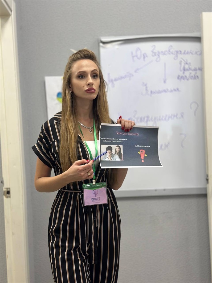 Практична частина була зосереджена на закріпленні знань у доступній формі. Молодь виконувала інтерактивні завдання, брала участь у рольових іграх і розбирала змодельовані життєві ситуації, що дозволило краще зрозуміти, як уникати правопорушень у реальному житті.