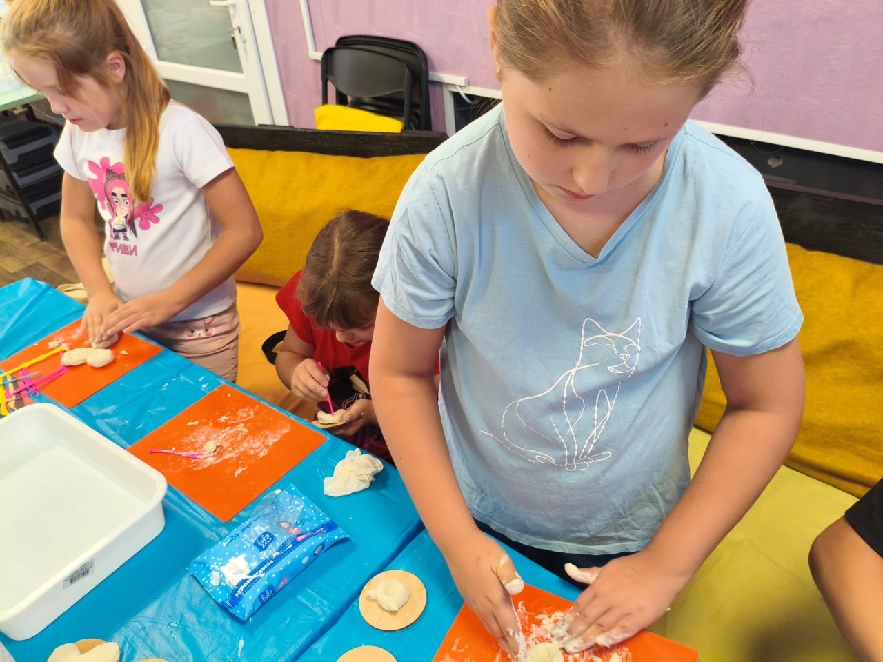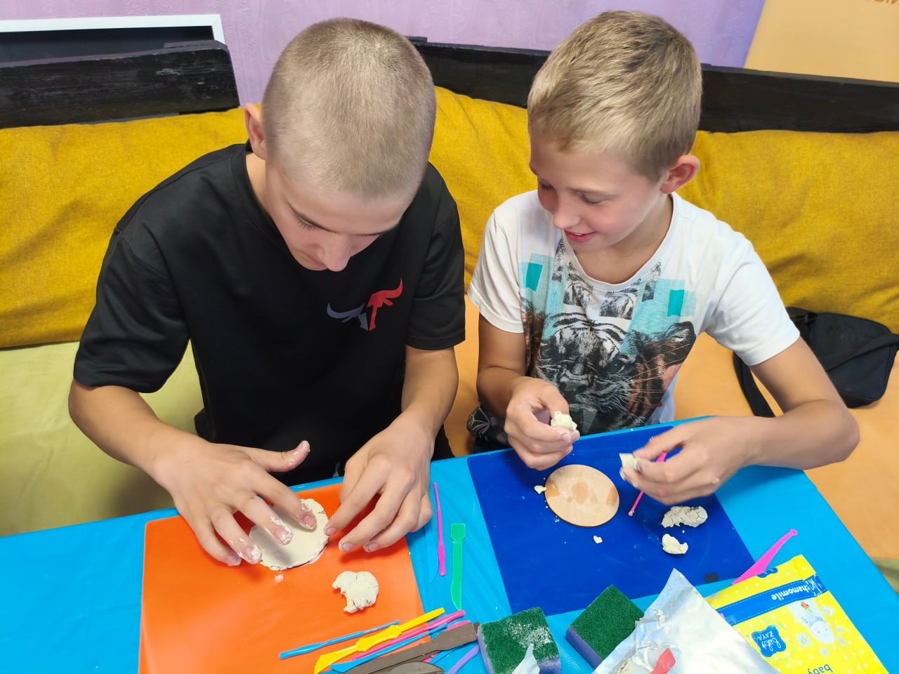 Цього разу учасники працювали з керамопластом – сучасним матеріалом для ліплення, що поєднує у собі елементи творчості та терапії. Ліплення з цього матеріалу не лише розвиває уяву, а й має помітний психологічний ефект: під час роботи відбувається м’який самомасаж долонь, активізується дрібна моторика та стимулюється робота головного мозку. Це сприяє зниженню рівня тривожності, покращує концентрацію та допомагає відновити внутрішню рівновагу.