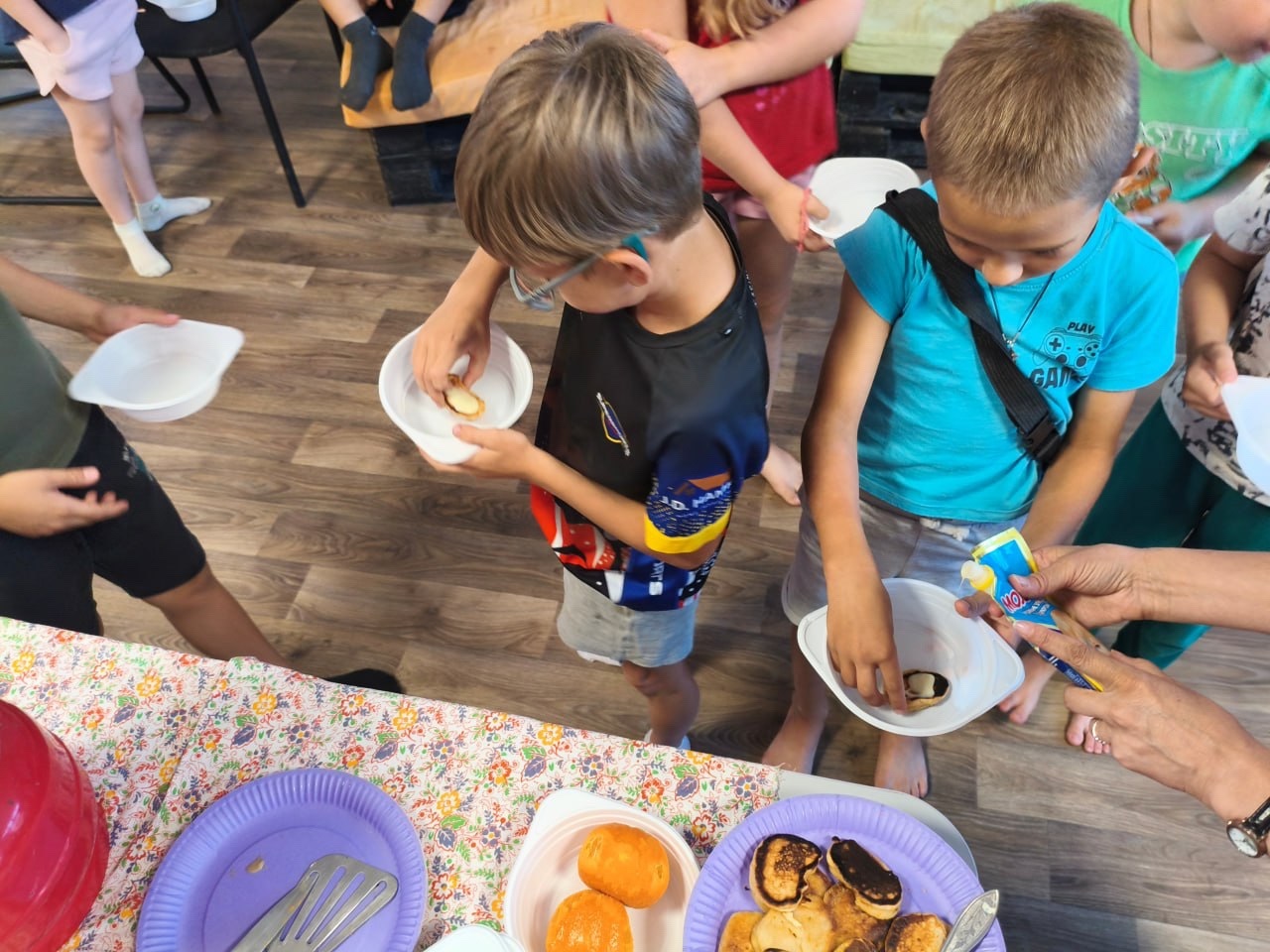 Фінальною частиною стала дегустація. Готові оладки подали зі згущеним молоком, і кожен міг порівняти обидва варіанти, обговорити різницю в смаку й поділитися власними кулінарними ідеями.