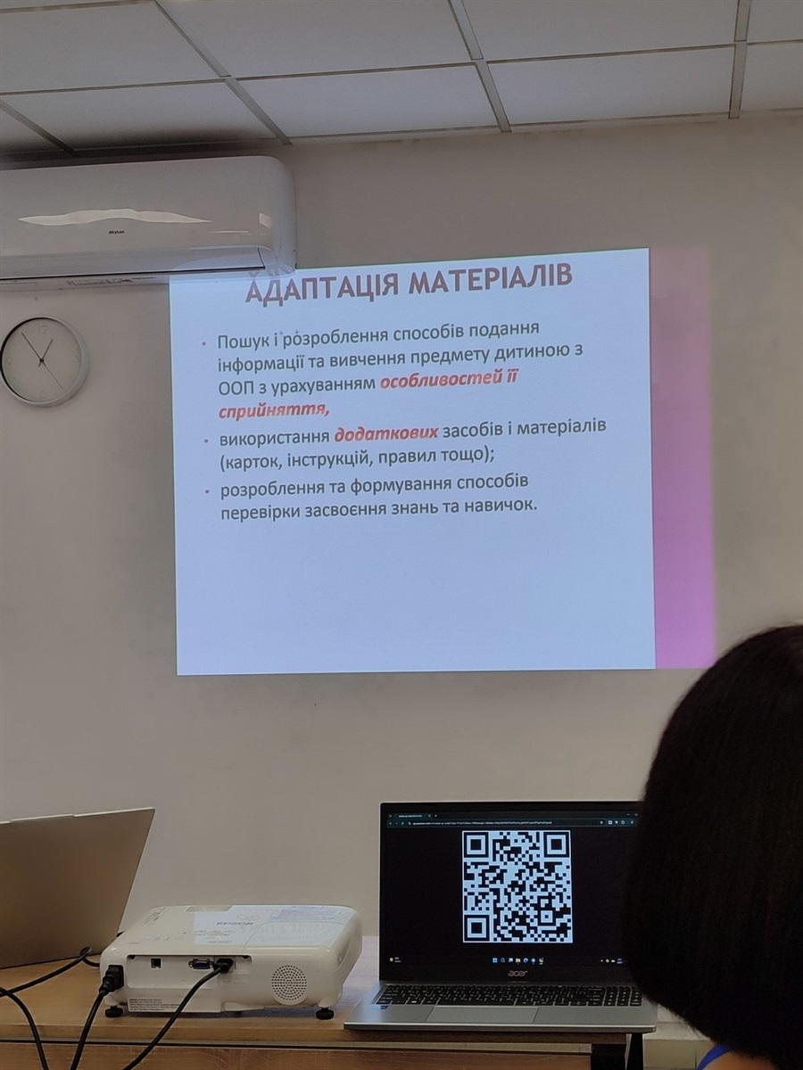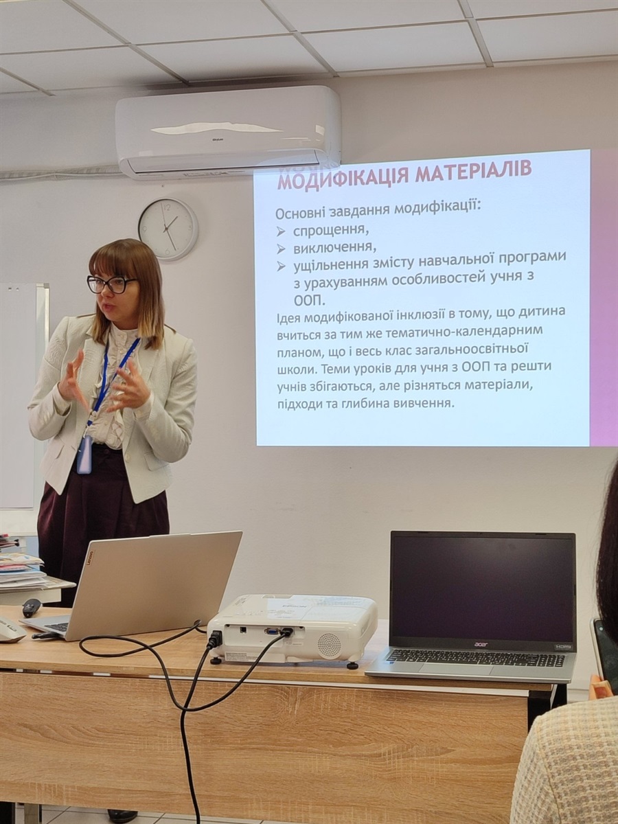 У другій частині семінару слово мала Людмила Захарова – мама хлопчика з розладом аутистичного спектра та асистентка вчителя. Вона поділилася особистим досвідом і розповіла, як можна адаптувати та модифікувати навчальний матеріал під потреби дітей з особливостями розвитку, враховувати їхній емоційний стан, застосовувати візуальні розклади та альтернативні способи комунікації. Окремо йшлося про важливість соціалізації таких учнів у колективі та пошук методів, які дозволяють дитині залишатися частиною класу, засвоюючи навчальні теми у власному темпі.