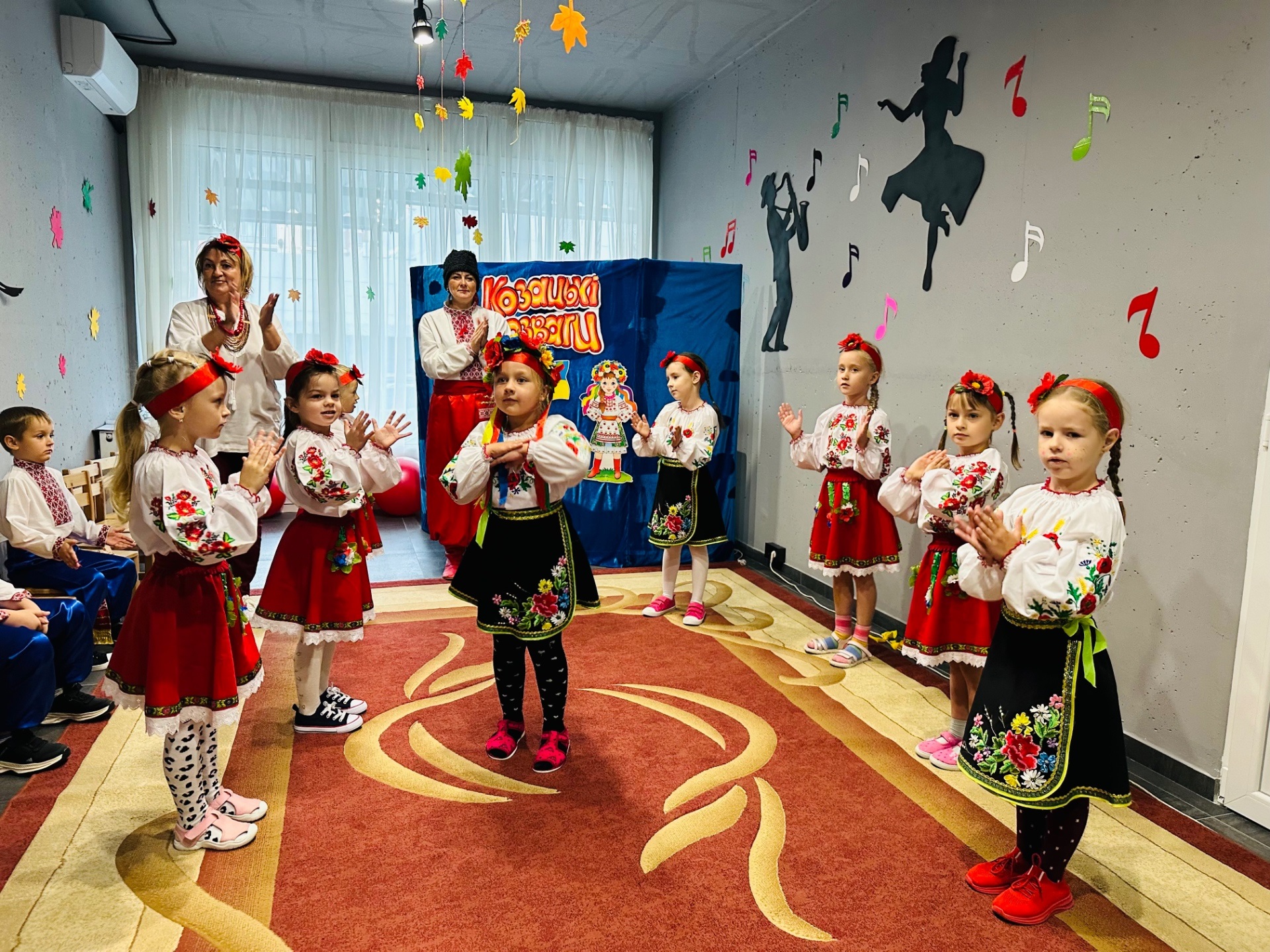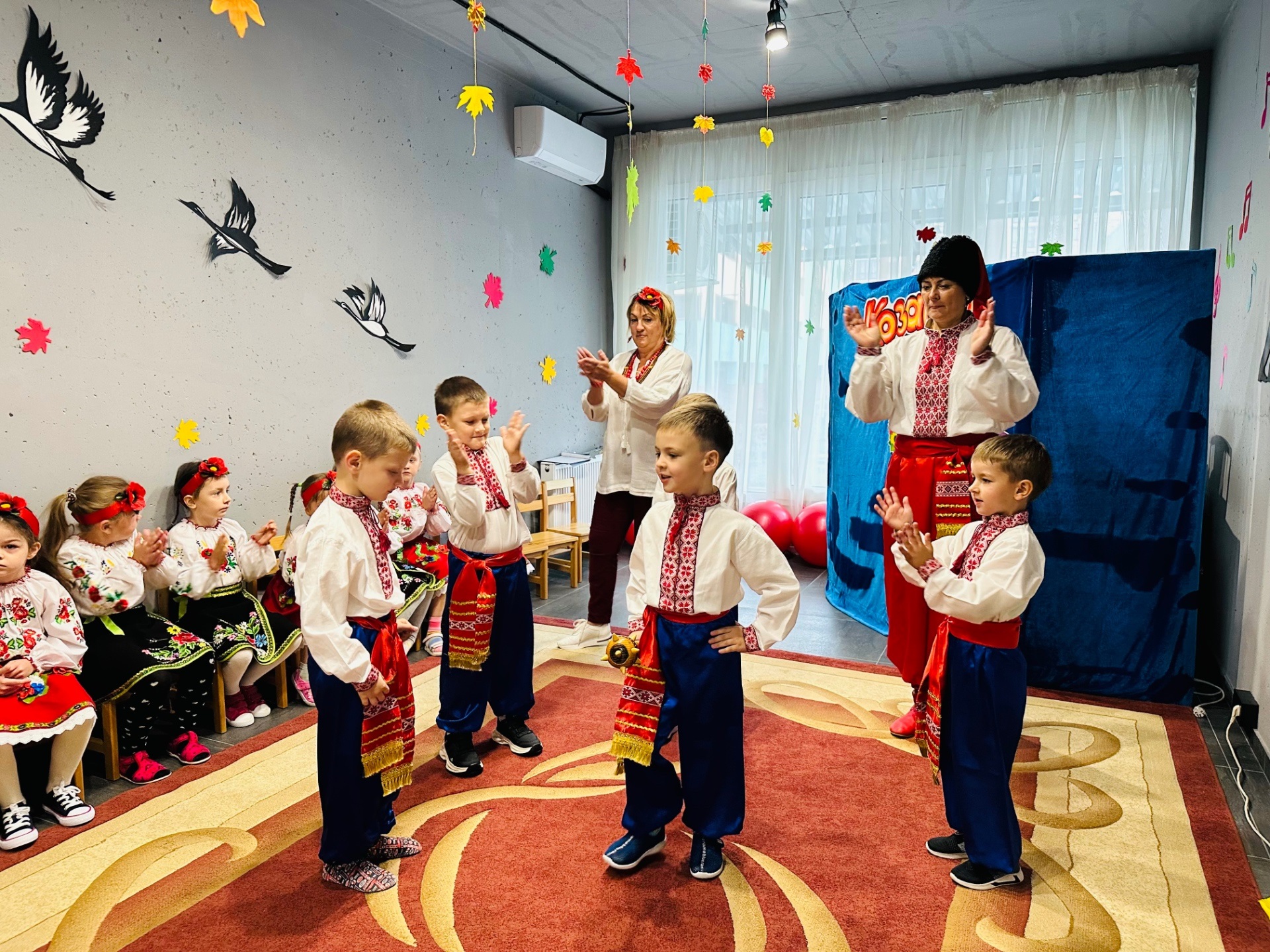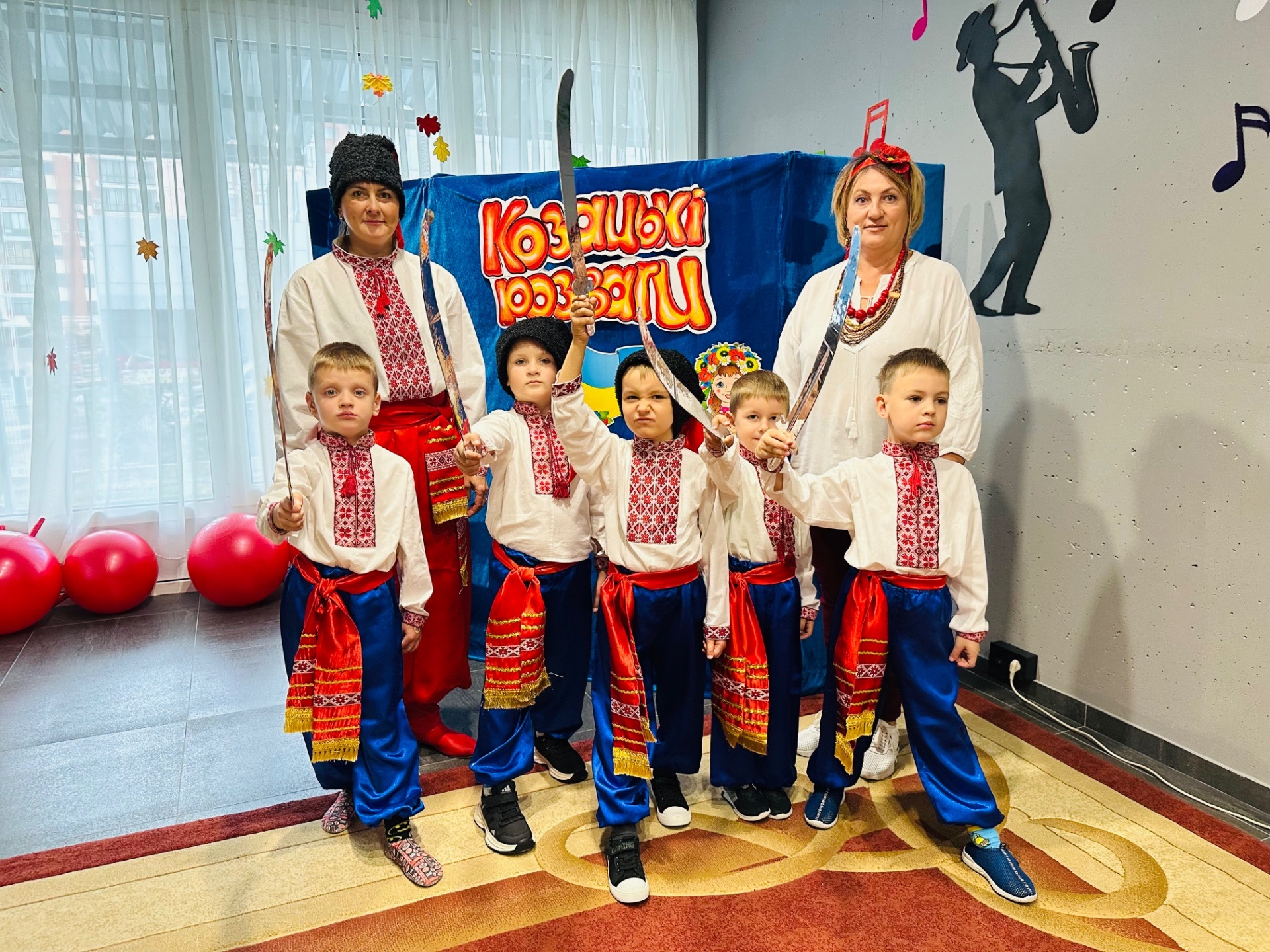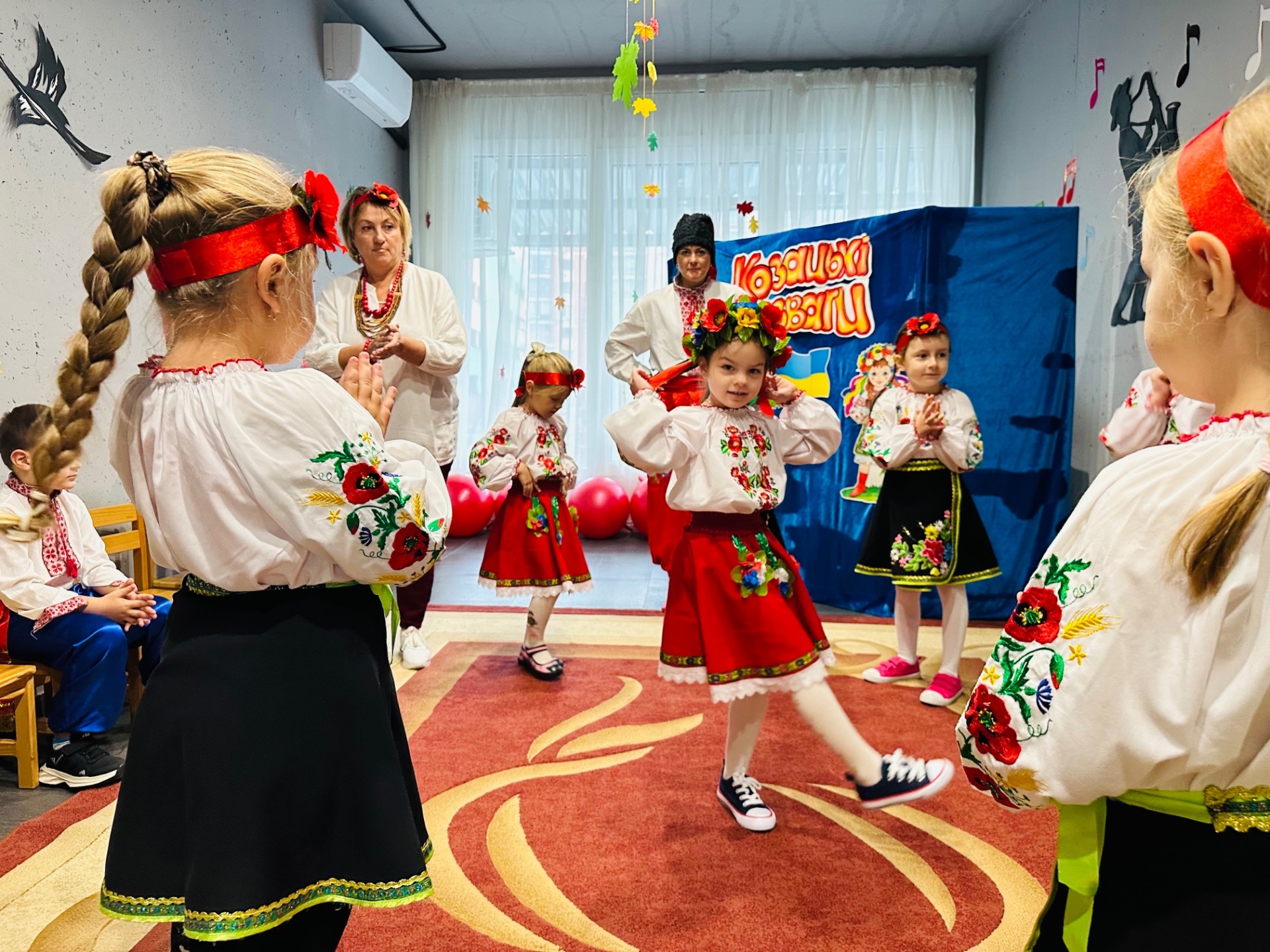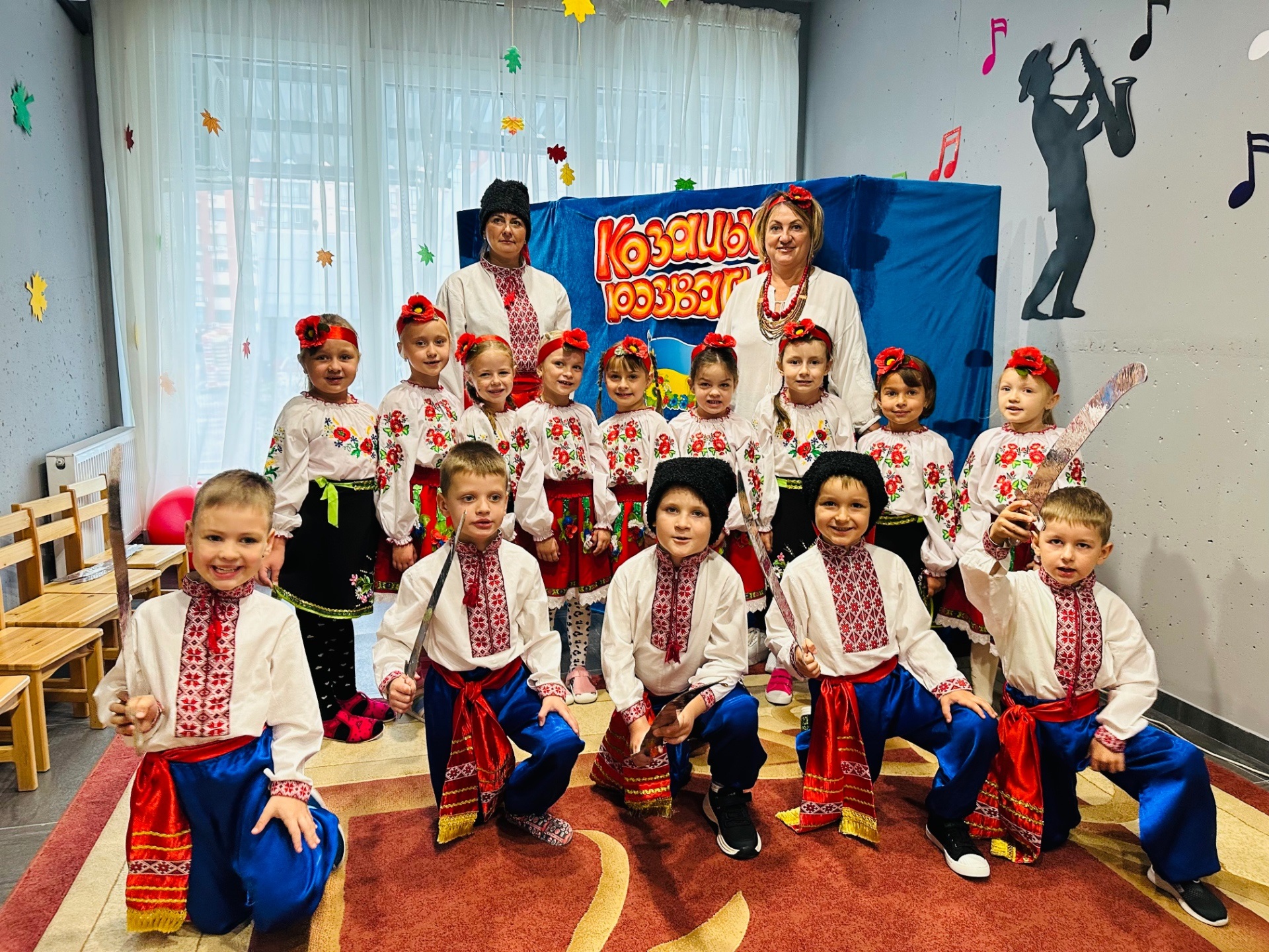 Дівчатка теж не залишилися осторонь – вони із задоволенням долучилися до рухливої гри «Чарівний віночок», у якій проявили кмітливість, витонченість і дружність. Завершальним акордом свята став музичний номер «Козачата». Діти співали й танцювали з особливим запалом, наповнюючи залу радістю та енергією.