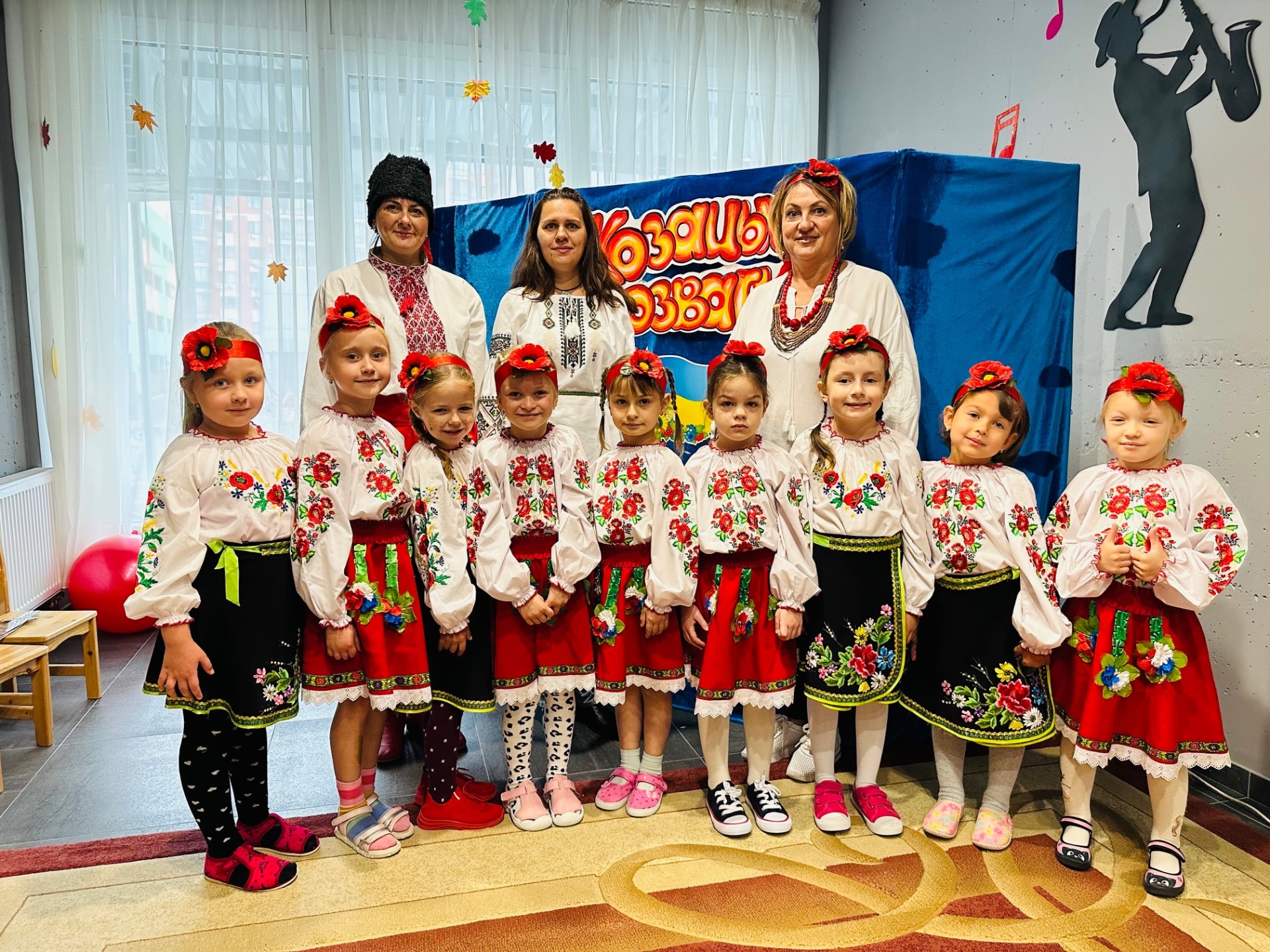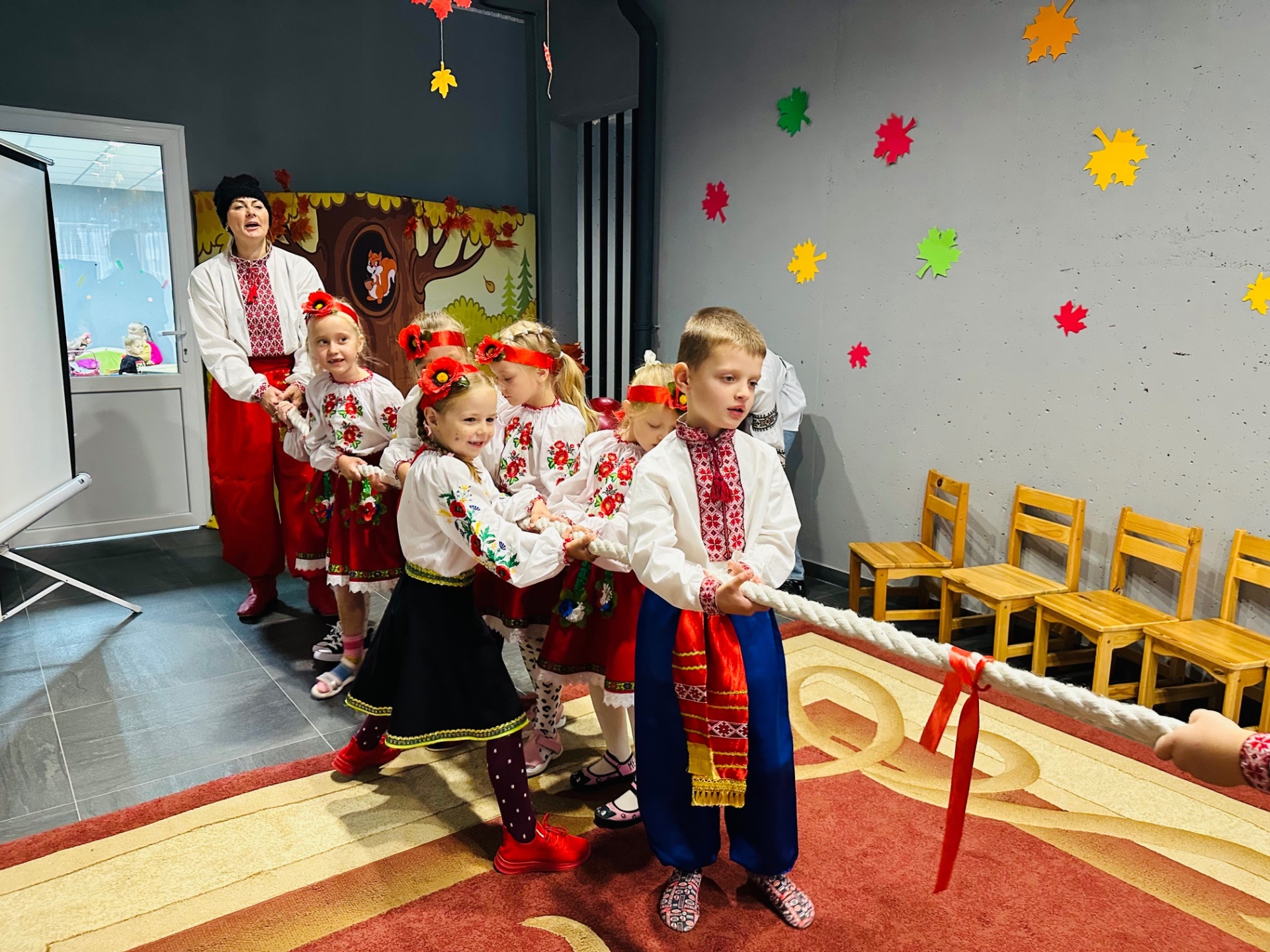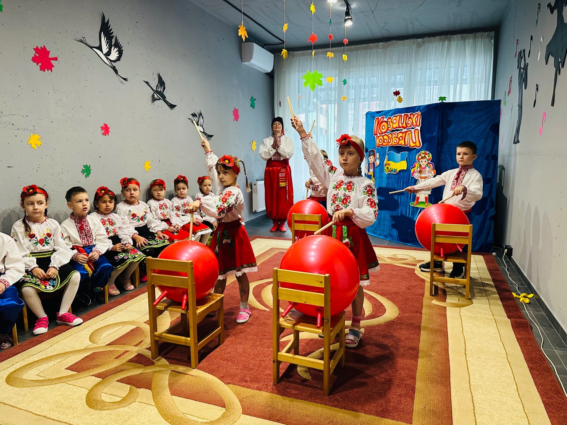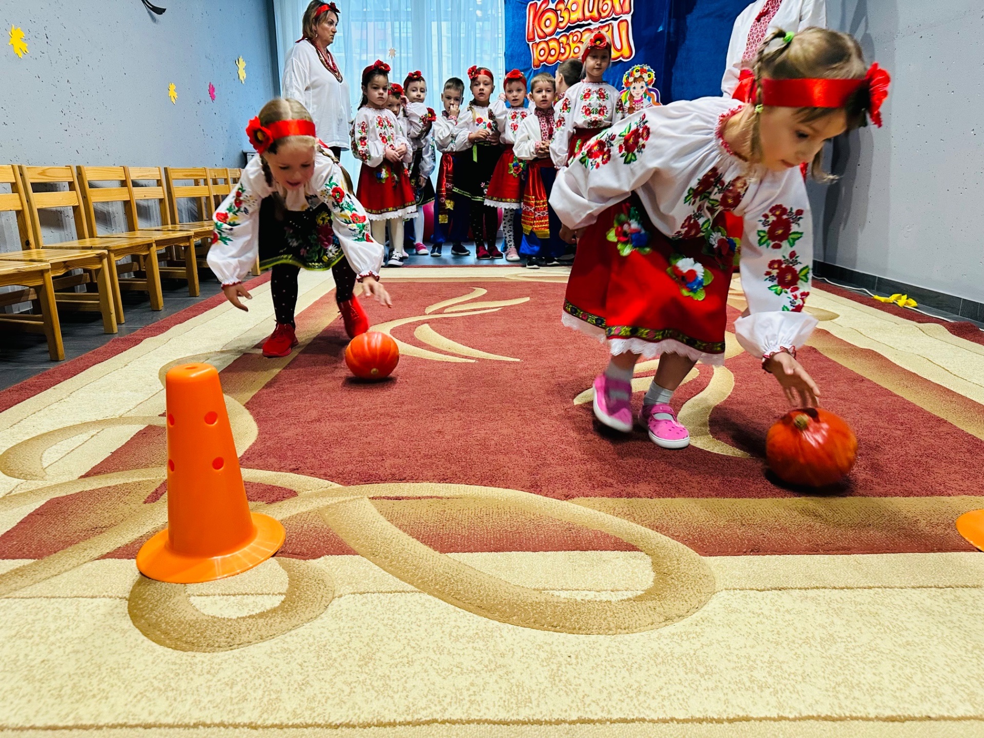 Дівчатка теж не залишилися осторонь – вони із задоволенням долучилися до рухливої гри «Чарівний віночок», у якій проявили кмітливість, витонченість і дружність. Завершальним акордом свята став музичний номер «Козачата». Діти співали й танцювали з особливим запалом, наповнюючи залу радістю та енергією.