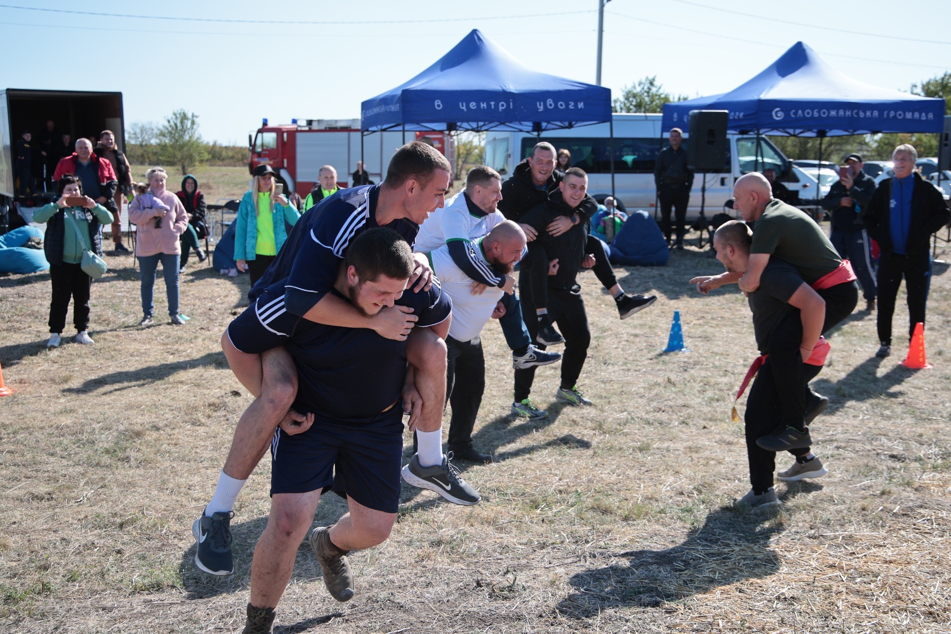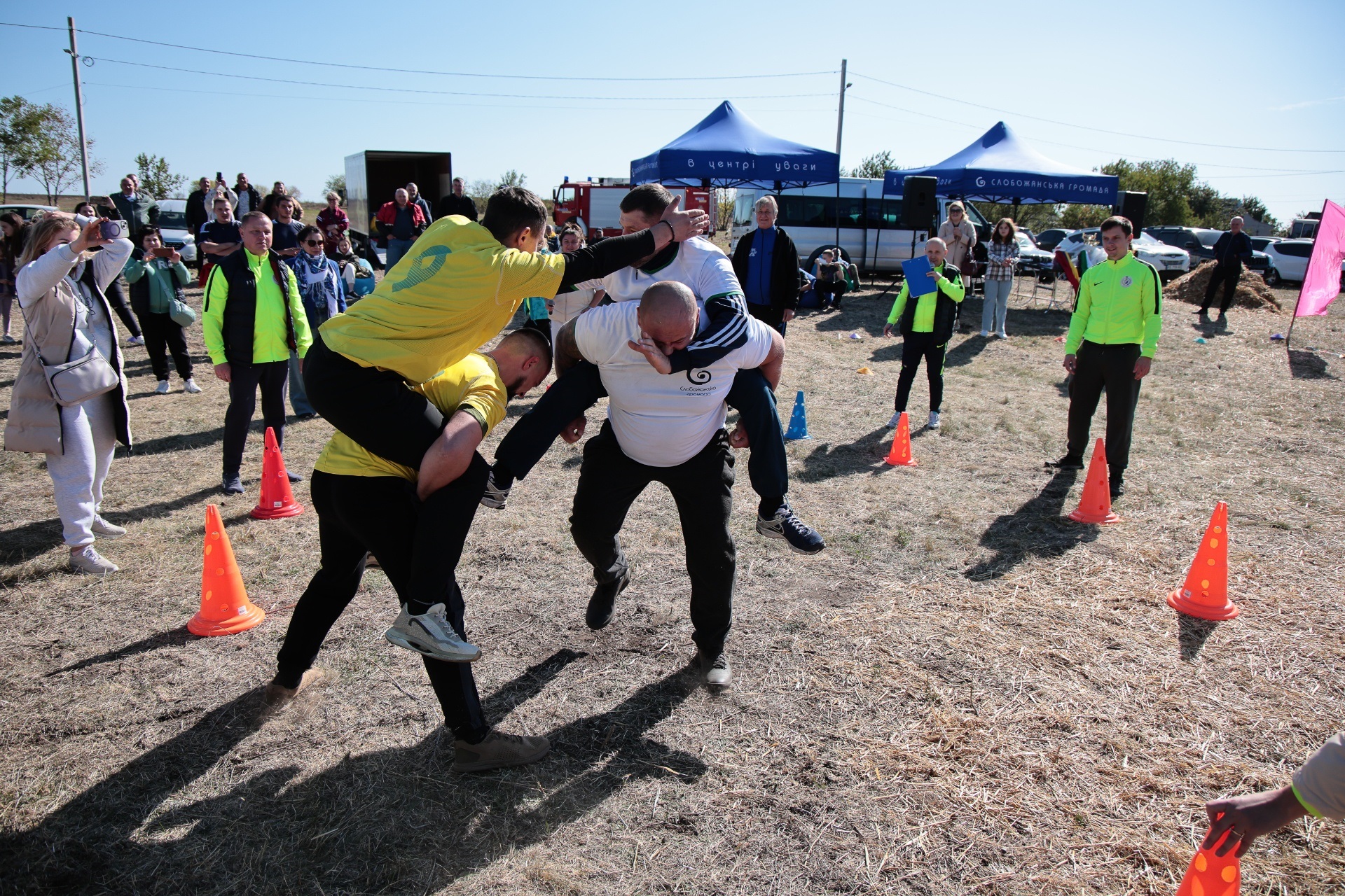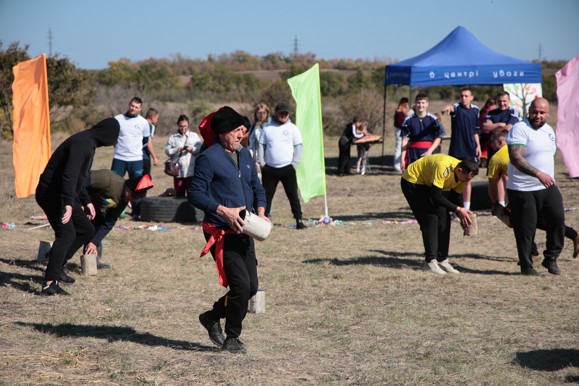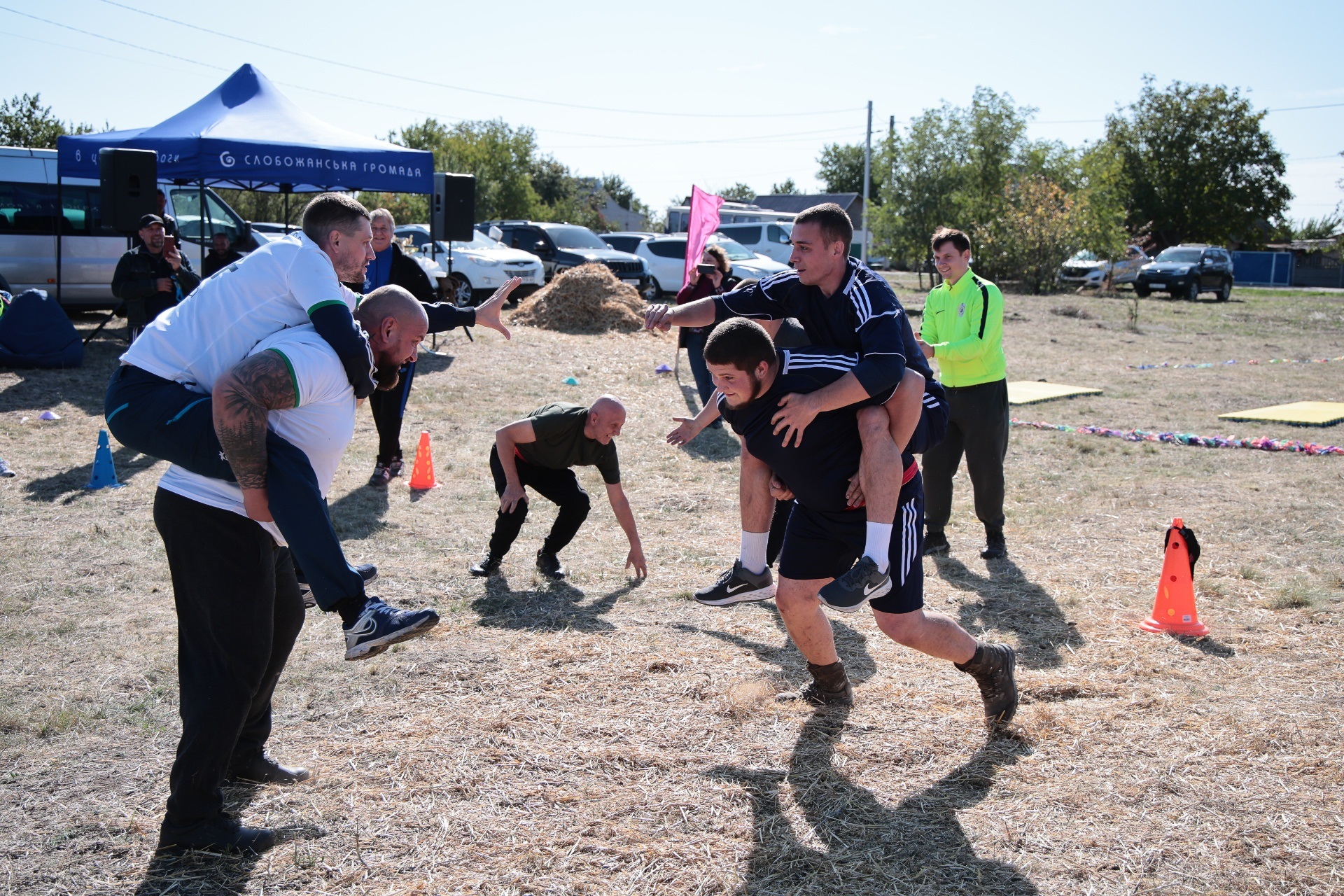 Змагання були побудовані так, щоб поєднати спортивний азарт і символіку козацької сили. Учасники пройшли дев’ять випробувань, кожне з яких мало свій характер. Метання списа вимагало влучності та сили руки, перекочування важкого колеса – витривалості, у хобіхорсингу головне було зберегти рівновагу та швидкість. Бій мішками перевіряв спритність і реакцію, а стрибки в мішках – здатність швидко долати перешкоди, навіть у жартівливій формі. У конкурсі «вершники» перемагали ті, хто краще відчував партнера й темп. Перетягування канату традиційно стало боротьбою характерів і злагодженості.