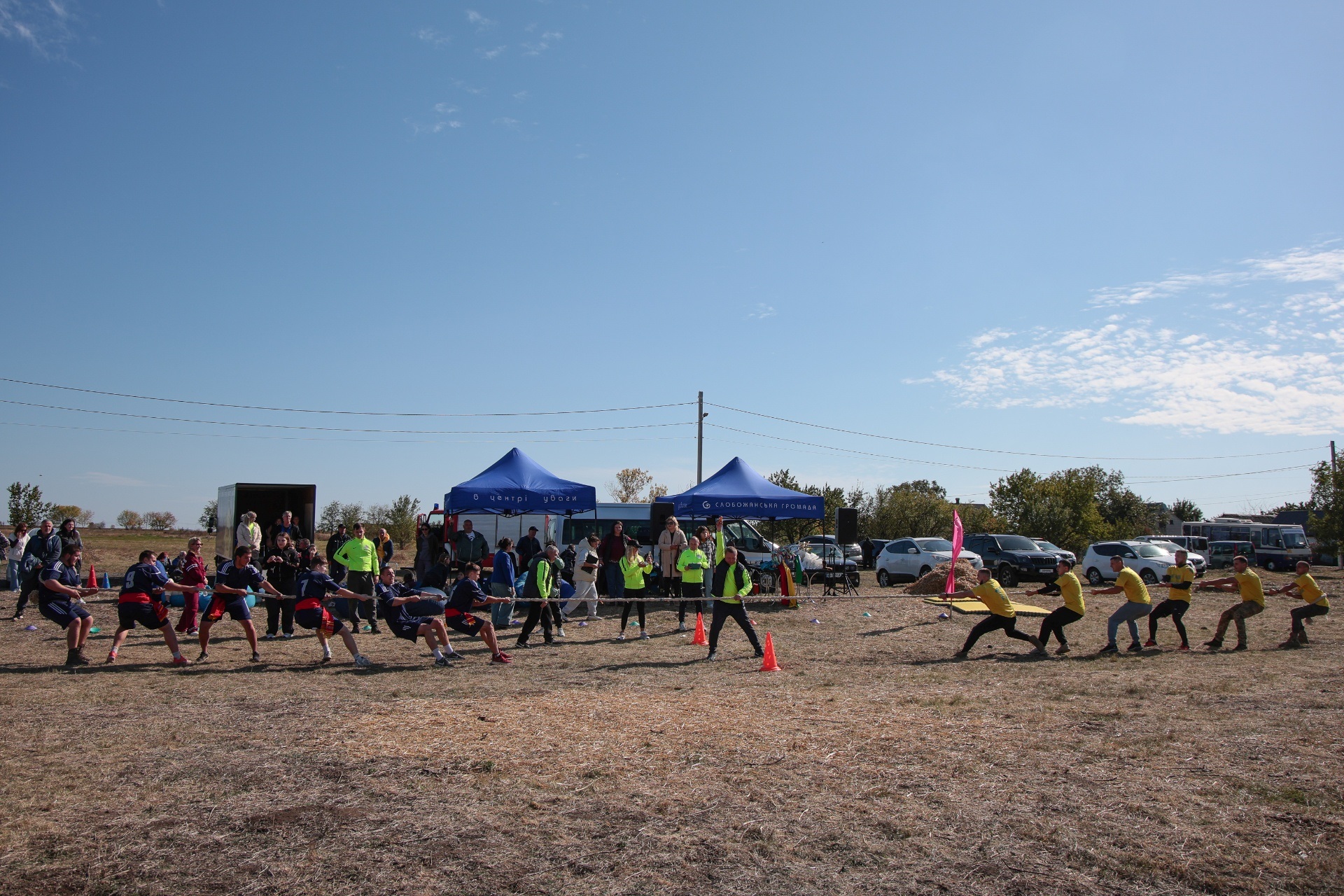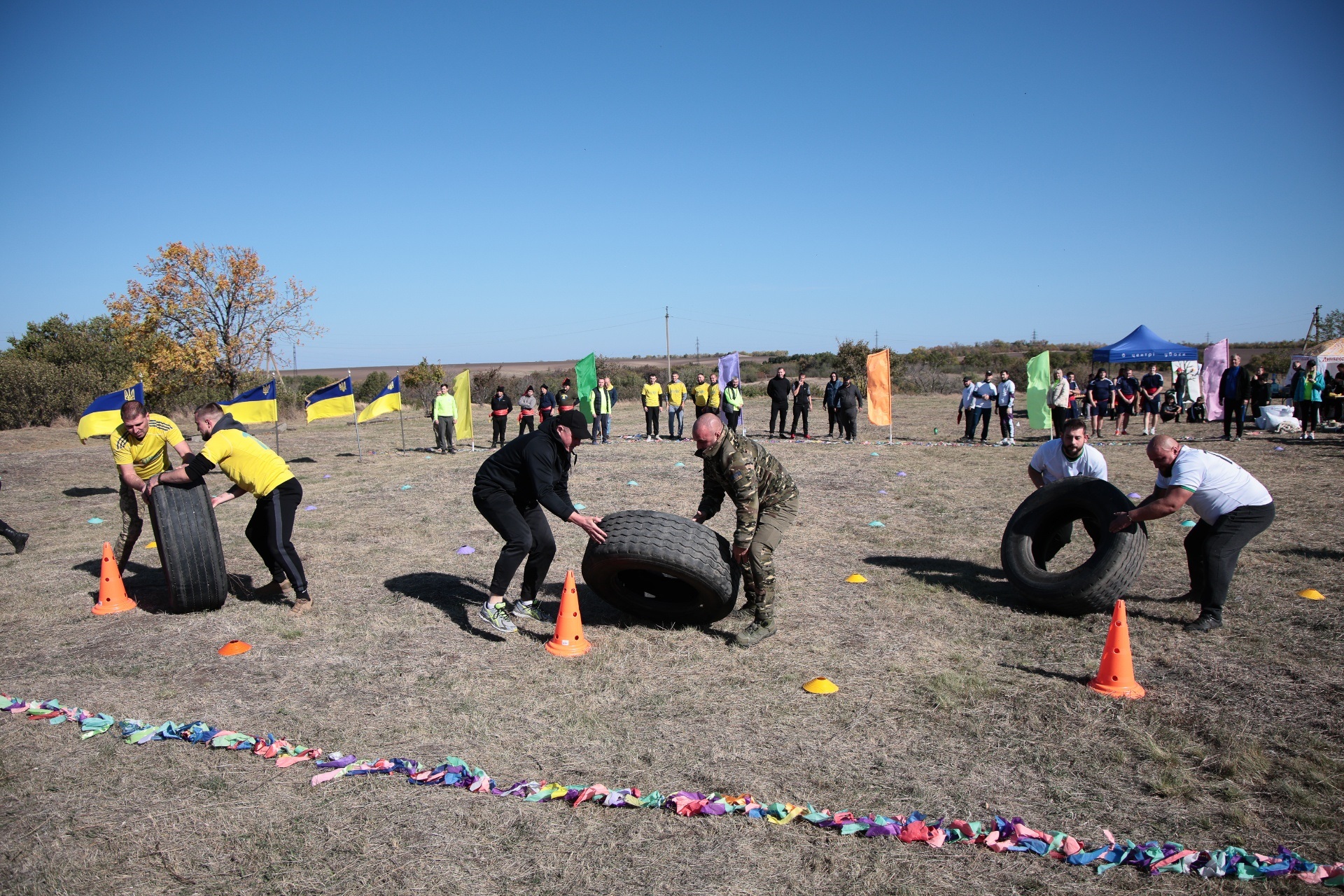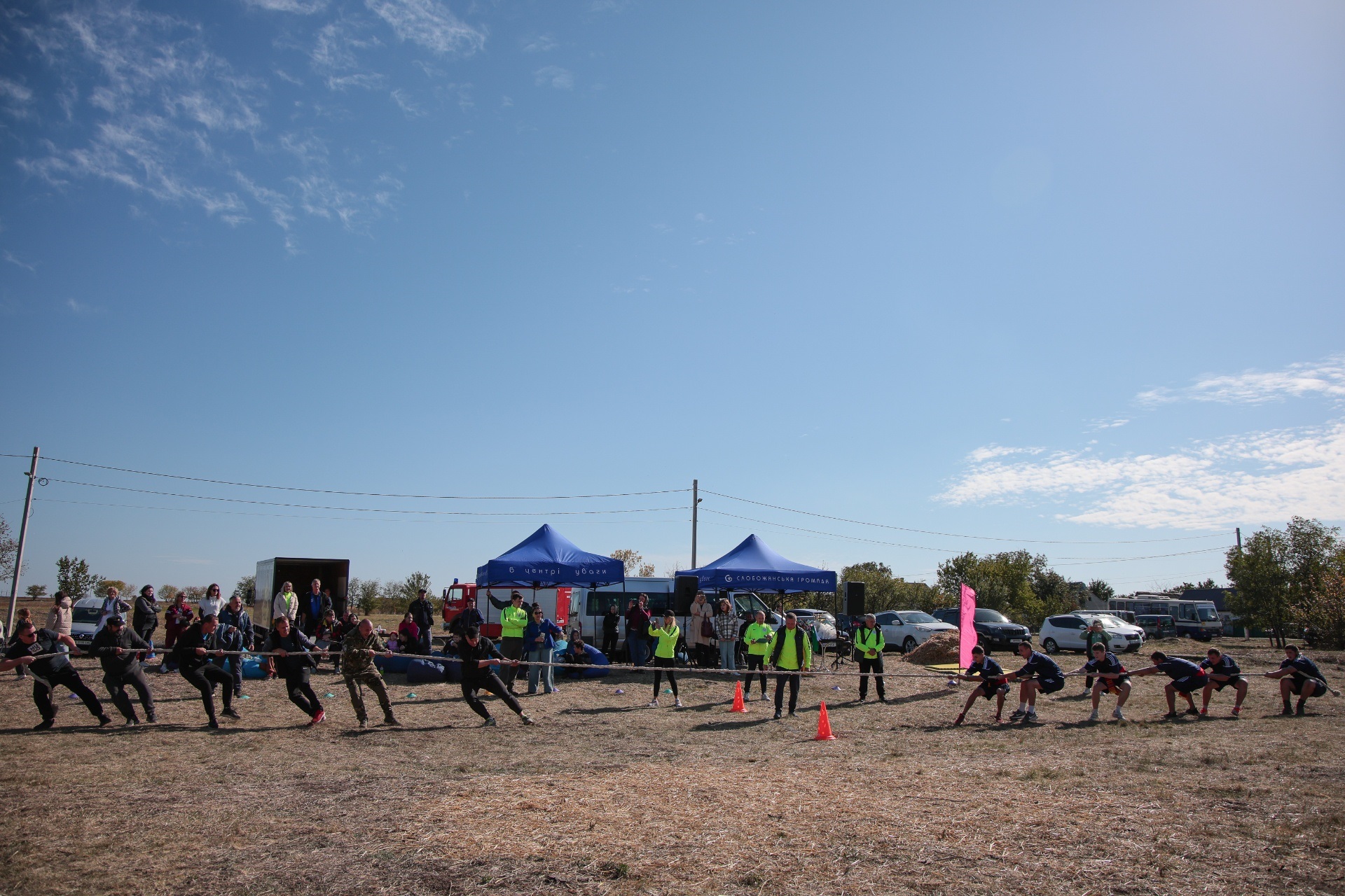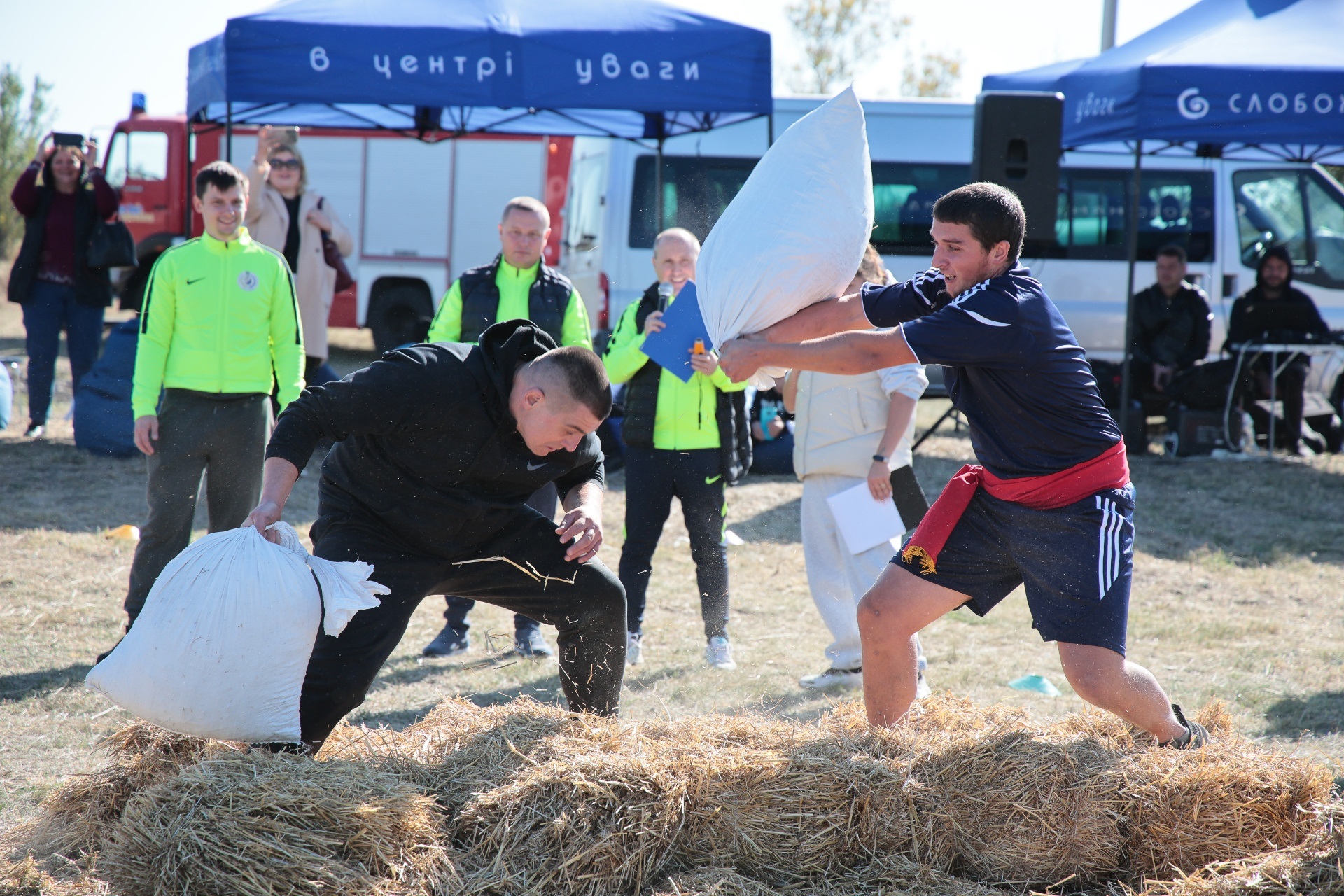 Змагання були побудовані так, щоб поєднати спортивний азарт і символіку козацької сили. Учасники пройшли дев’ять випробувань, кожне з яких мало свій характер. Метання списа вимагало влучності та сили руки, перекочування важкого колеса – витривалості, у хобіхорсингу головне було зберегти рівновагу та швидкість. Бій мішками перевіряв спритність і реакцію, а стрибки в мішках – здатність швидко долати перешкоди, навіть у жартівливій формі. У конкурсі «вершники» перемагали ті, хто краще відчував партнера й темп. Перетягування канату традиційно стало боротьбою характерів і злагодженості.