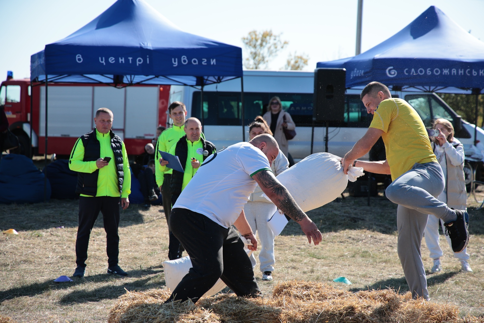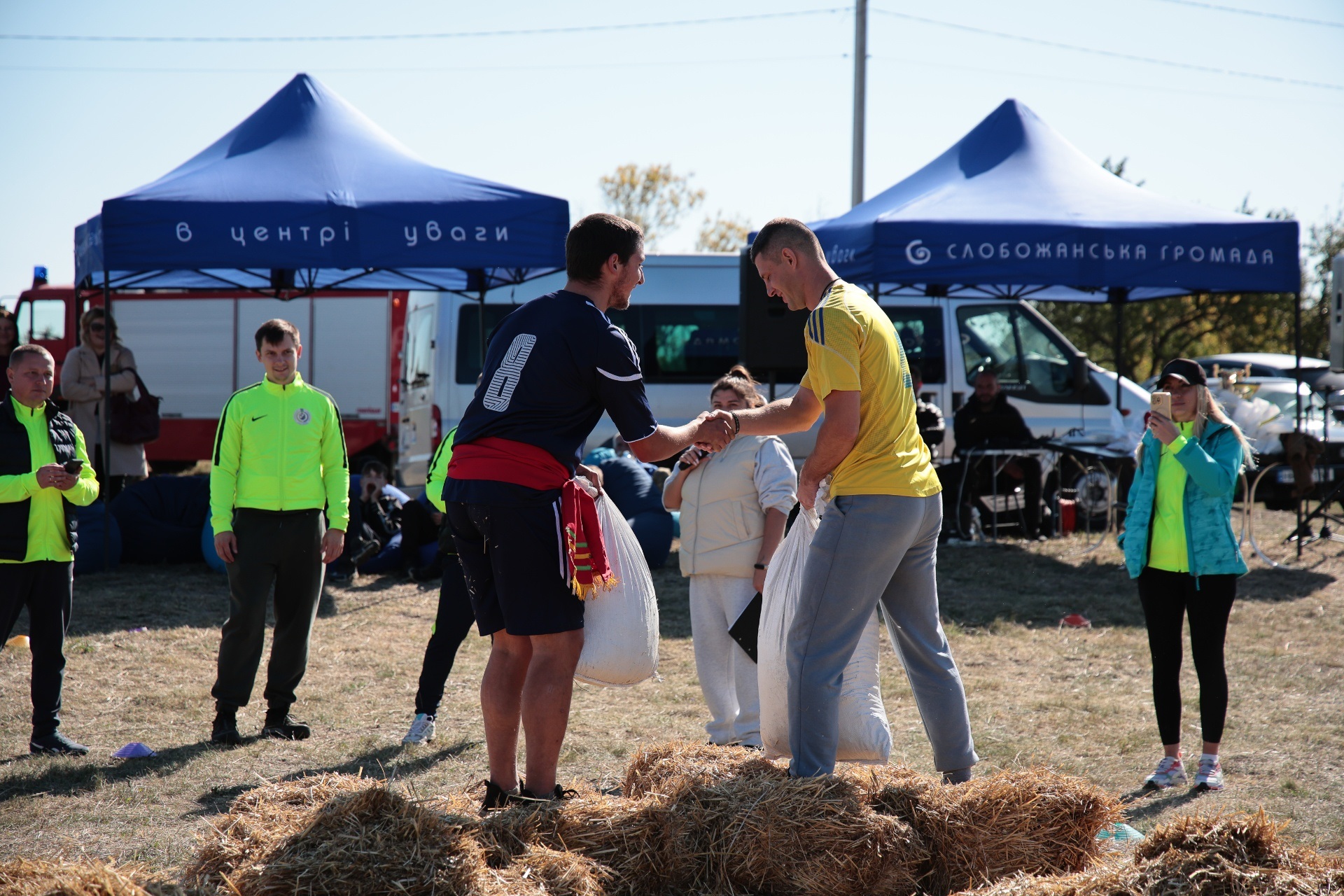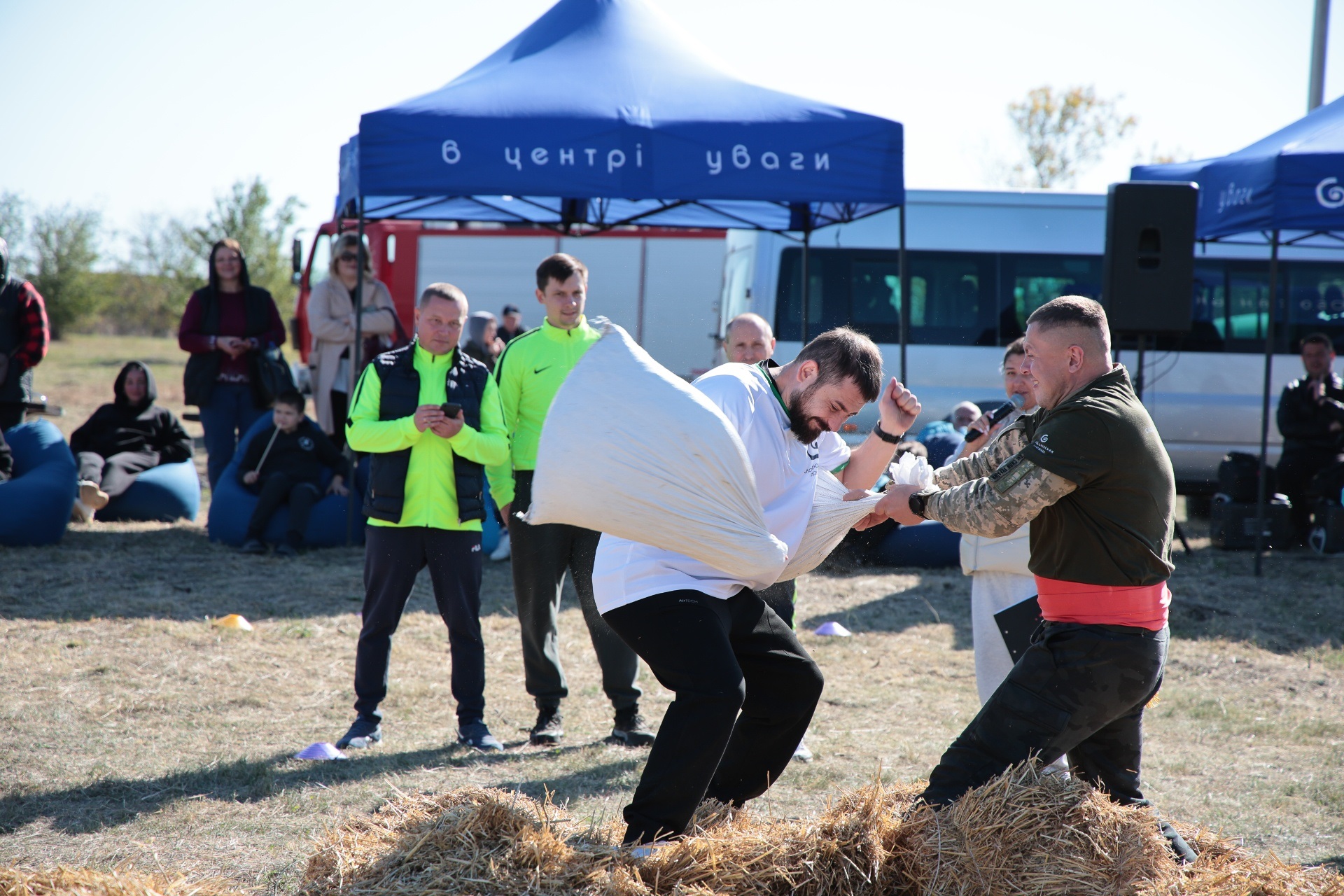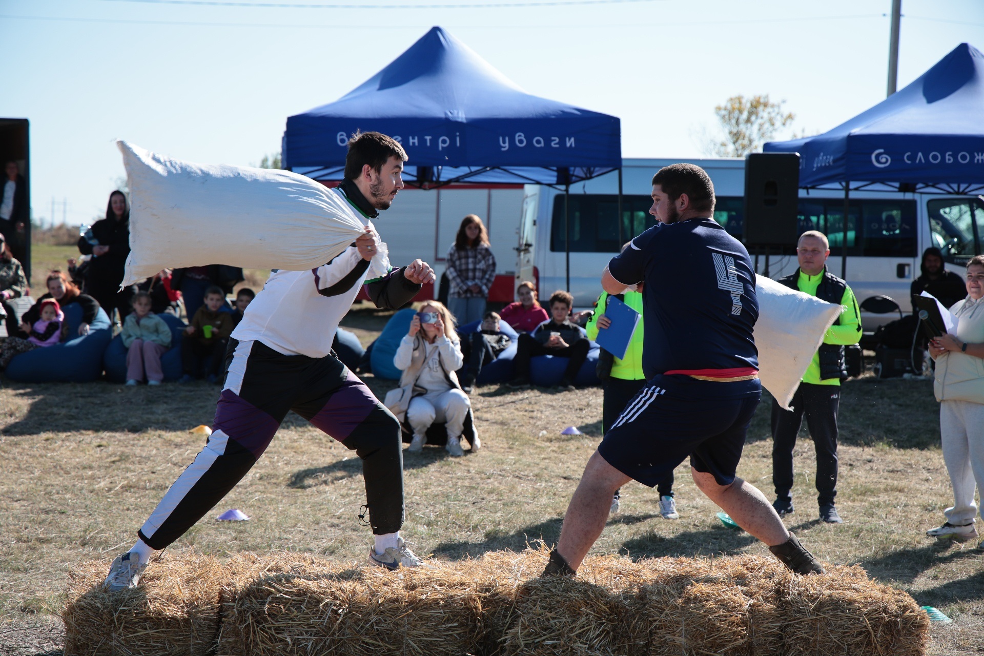Змагання були побудовані так, щоб поєднати спортивний азарт і символіку козацької сили. Учасники пройшли дев’ять випробувань, кожне з яких мало свій характер. Метання списа вимагало влучності та сили руки, перекочування важкого колеса – витривалості, у хобіхорсингу головне було зберегти рівновагу та швидкість. Бій мішками перевіряв спритність і реакцію, а стрибки в мішках – здатність швидко долати перешкоди, навіть у жартівливій формі. У конкурсі «вершники» перемагали ті, хто краще відчував партнера й темп. Перетягування канату традиційно стало боротьбою характерів і злагодженості.