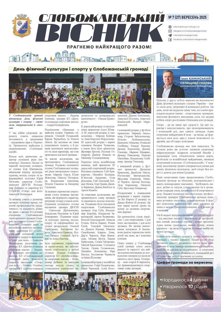 Друком вийшов 27 загалом та 7 у 2025 році номер інформаційного вісника «Слобожанський Вісник». У ньому зібрані головні події вересня в житті нашої громади.