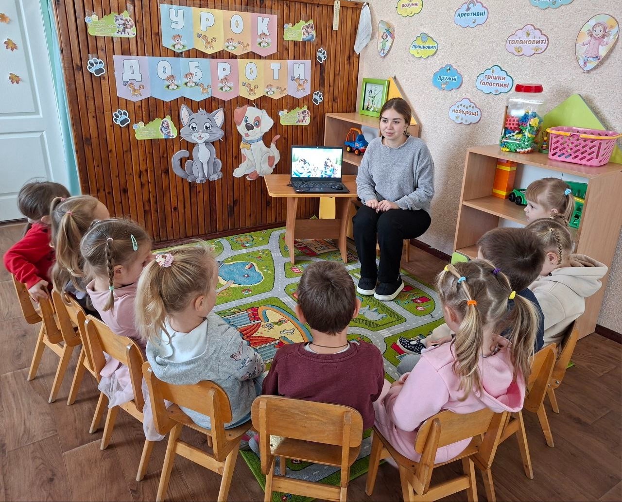 Під час занять вихованці із захопленням слухали цікаві історії про тварин, дізнавалися, як правильно піклуватися про домашніх улюбленців і як можна допомогти безпритульним. Разом обговорювали важливість добрих вчинків і людяності.
