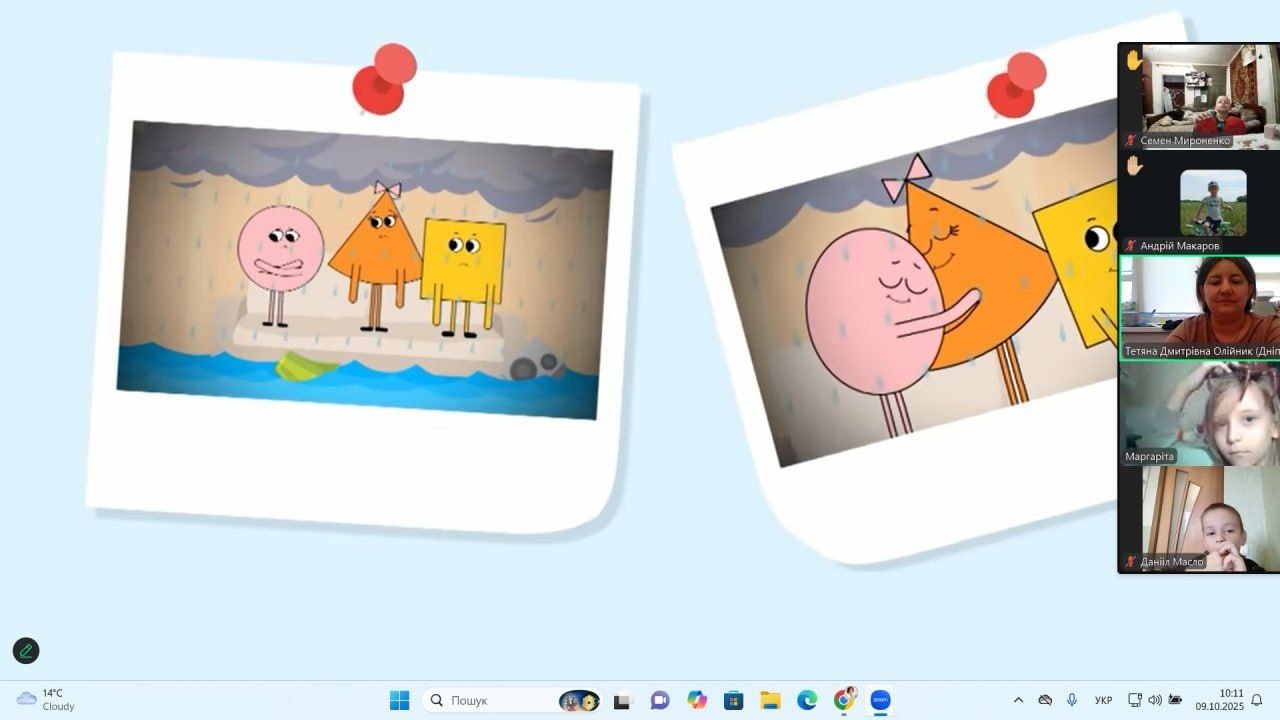 З наймолодшими школярами говорили про емпатію та підтримку інших – діти переглядали тематичні відео, обговорювали життєві ситуації та створювали карту підтримки й емпатії класу – простір, де кожен може знайти розуміння, добрі слова й тепло від своїх однокласників.