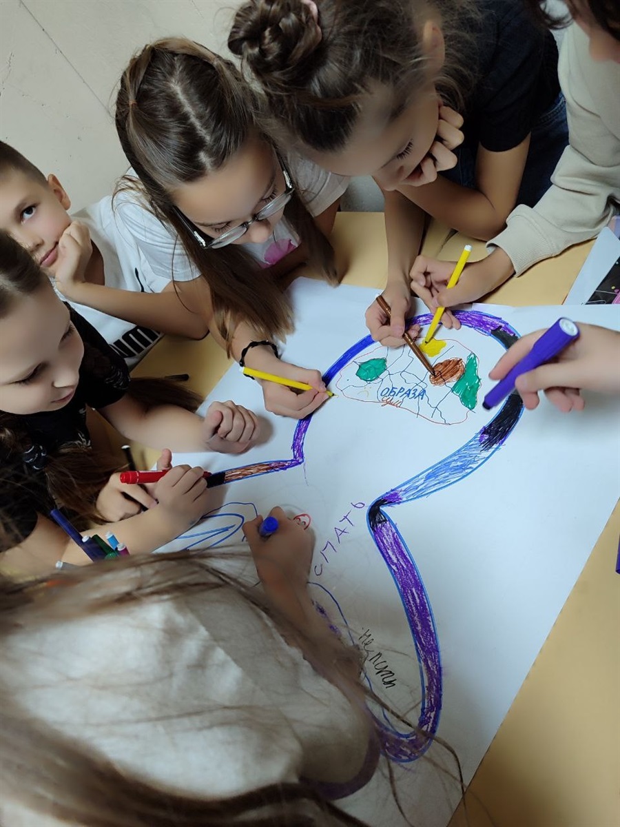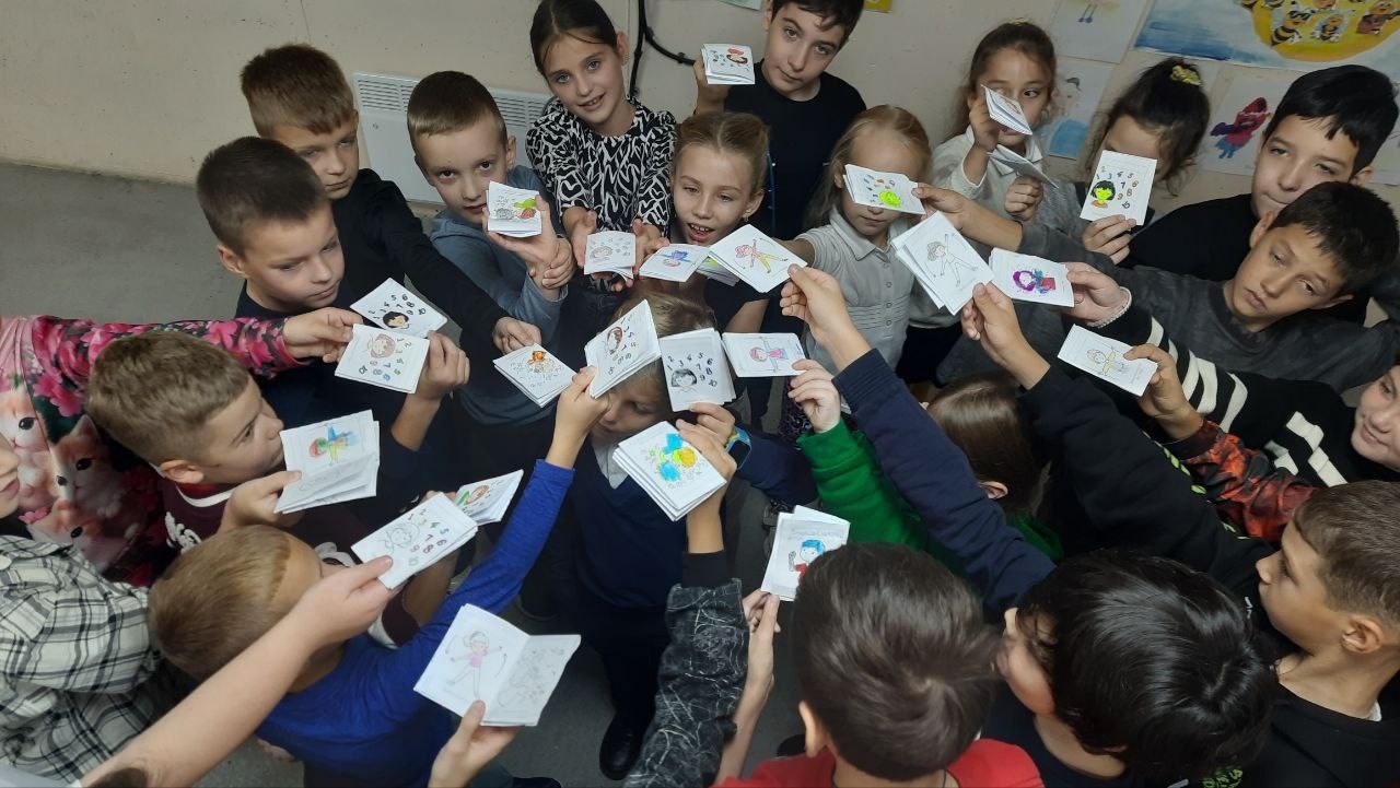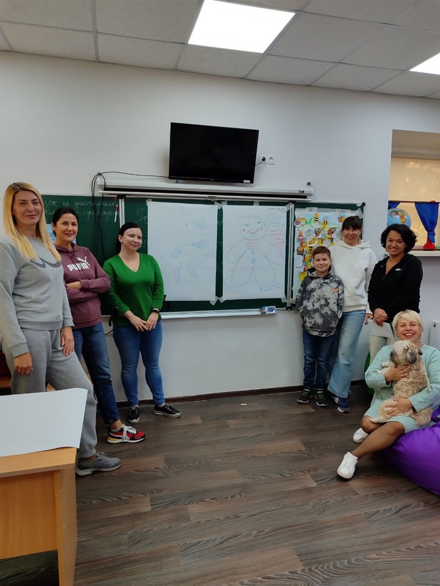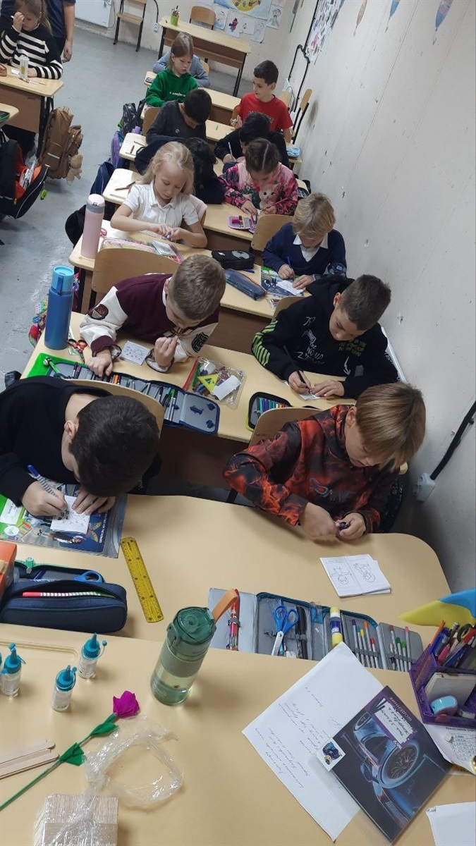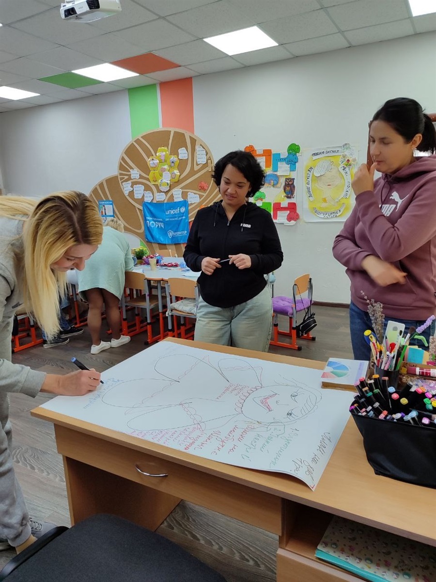 Для учнів 3–4 класів шкільний психолог Тетяна Олійник провела едукаційне заняття від Всеукраїнського громадського центру «Волонтер». Школярі створювали два силуети людини – зелений, який символізував «щасливу, впевнену в собі людину», та синій – «засмучену, пригнічену, тривожну». Разом аналізували, що такі люди відчувають, як поводяться, і які думки їх супроводжують, а також говорили про те, як емоції впливають на поведінку і чому важливо вчасно звертати увагу на свій внутрішній стан.