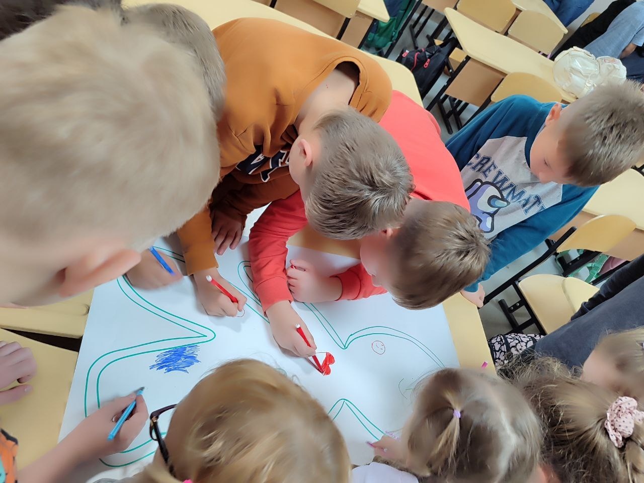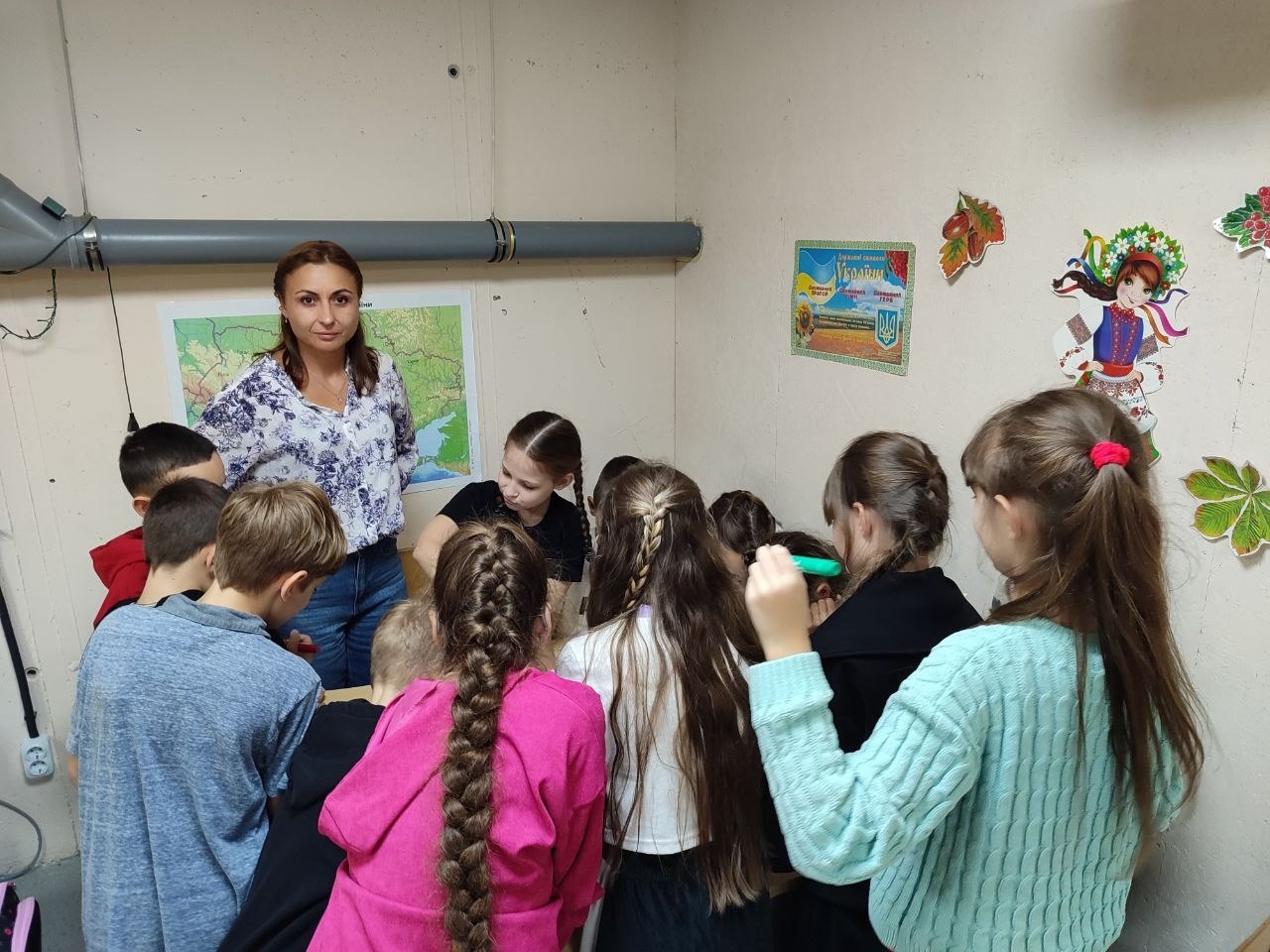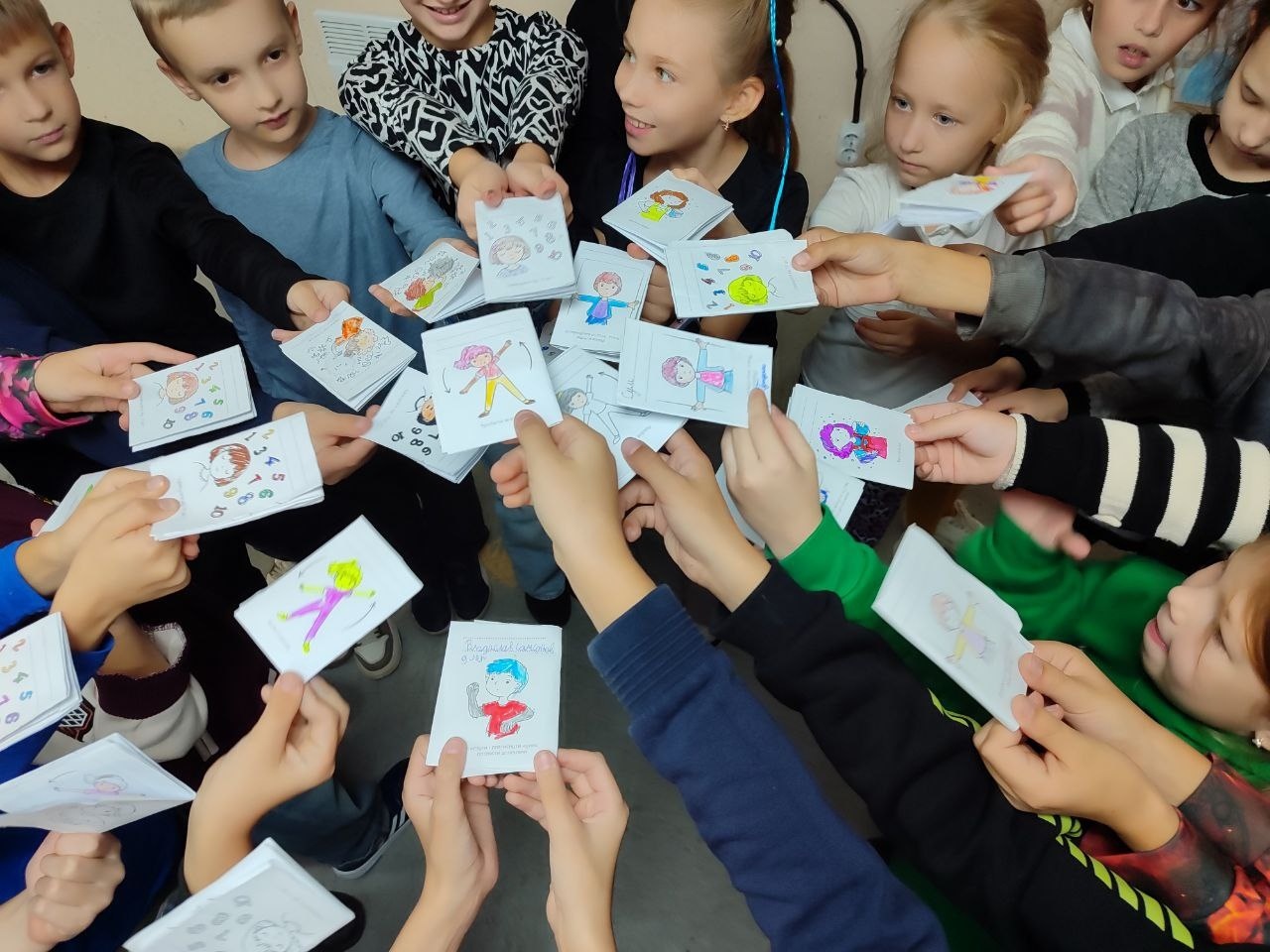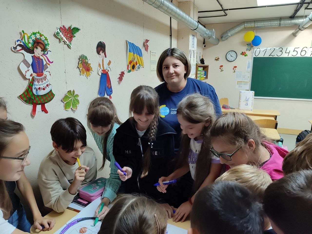 Для учнів 3–4 класів шкільний психолог Тетяна Олійник провела едукаційне заняття від Всеукраїнського громадського центру «Волонтер». Школярі створювали два силуети людини – зелений, який символізував «щасливу, впевнену в собі людину», та синій – «засмучену, пригнічену, тривожну». Разом аналізували, що такі люди відчувають, як поводяться, і які думки їх супроводжують, а також говорили про те, як емоції впливають на поведінку і чому важливо вчасно звертати увагу на свій внутрішній стан.