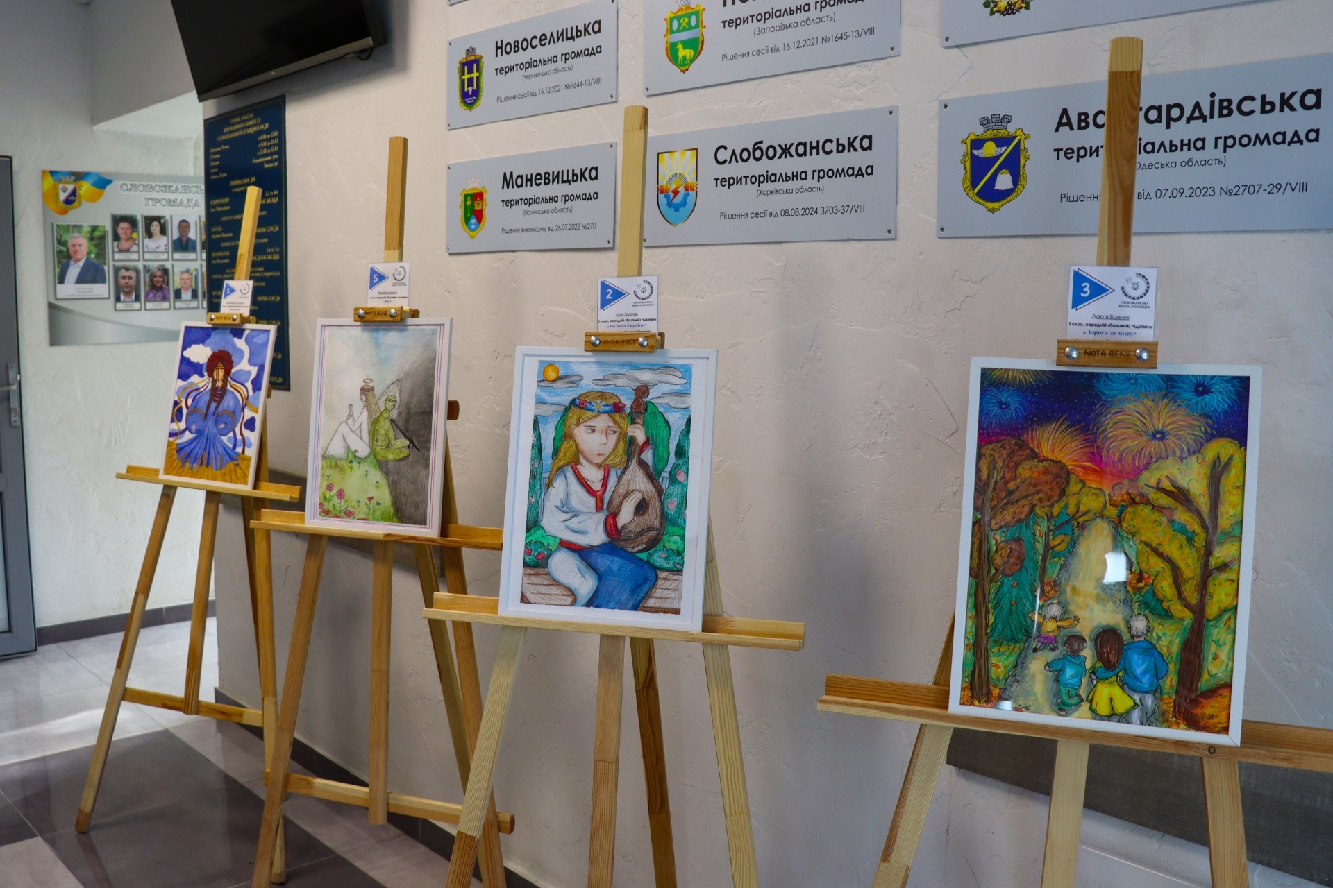 Всі охочі також можуть побачити творчі роботи юних майстрів в приміщенні Слобожанської селищної ради, виставка діятиме до 24 жовтня включно.