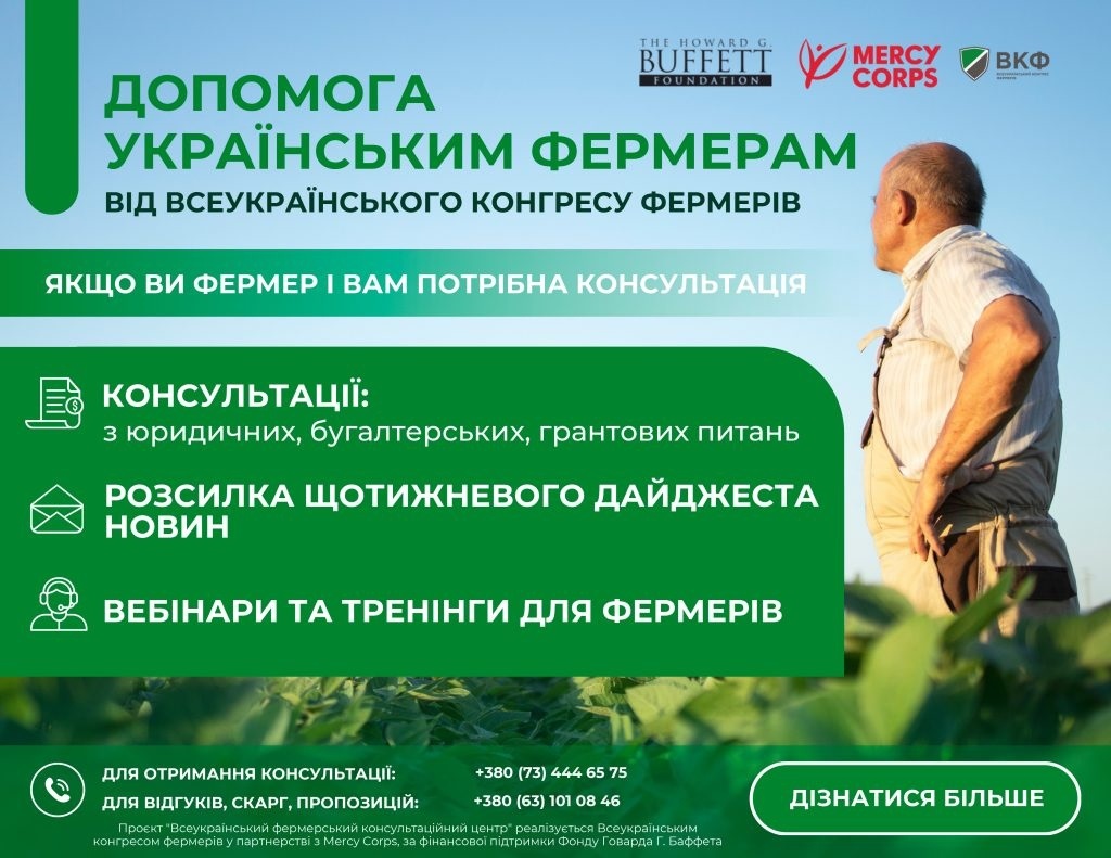 Програма допомоги фермерам реалізується Всеукраїнським конгресом фермерів у партнерстві з Mercy Corps. Виражені точки зору під час вебінарів не обов’язково відображають офіційні позиції Mercy Corps.