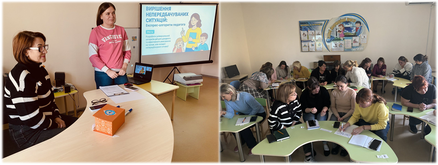Метою практикуму було формування у педагогів чіткого алгоритму дій для реагування на складні або нестандартні ситуації, що можуть виникати під час освітнього процесу.