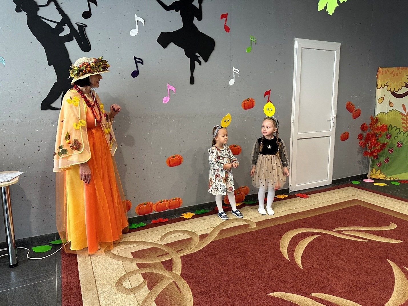 Дошкільнята разом із вихователями та музичними керівниками поринули у чарівний світ осені – щедрої, барвистої, веселкової. Малята співали пісні, читали вірші, водили хороводи, брали участь у веселих іграх та таночках.