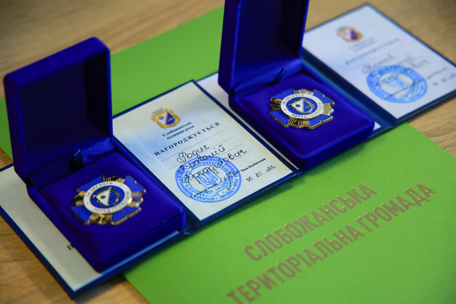 Нагрудним знаком «За заслуги перед громадою» відзначено військовослужбовців Слобожанської громади – Віталія Родича та Олександра Іванова. Відзнаки отримали їхні рідні.