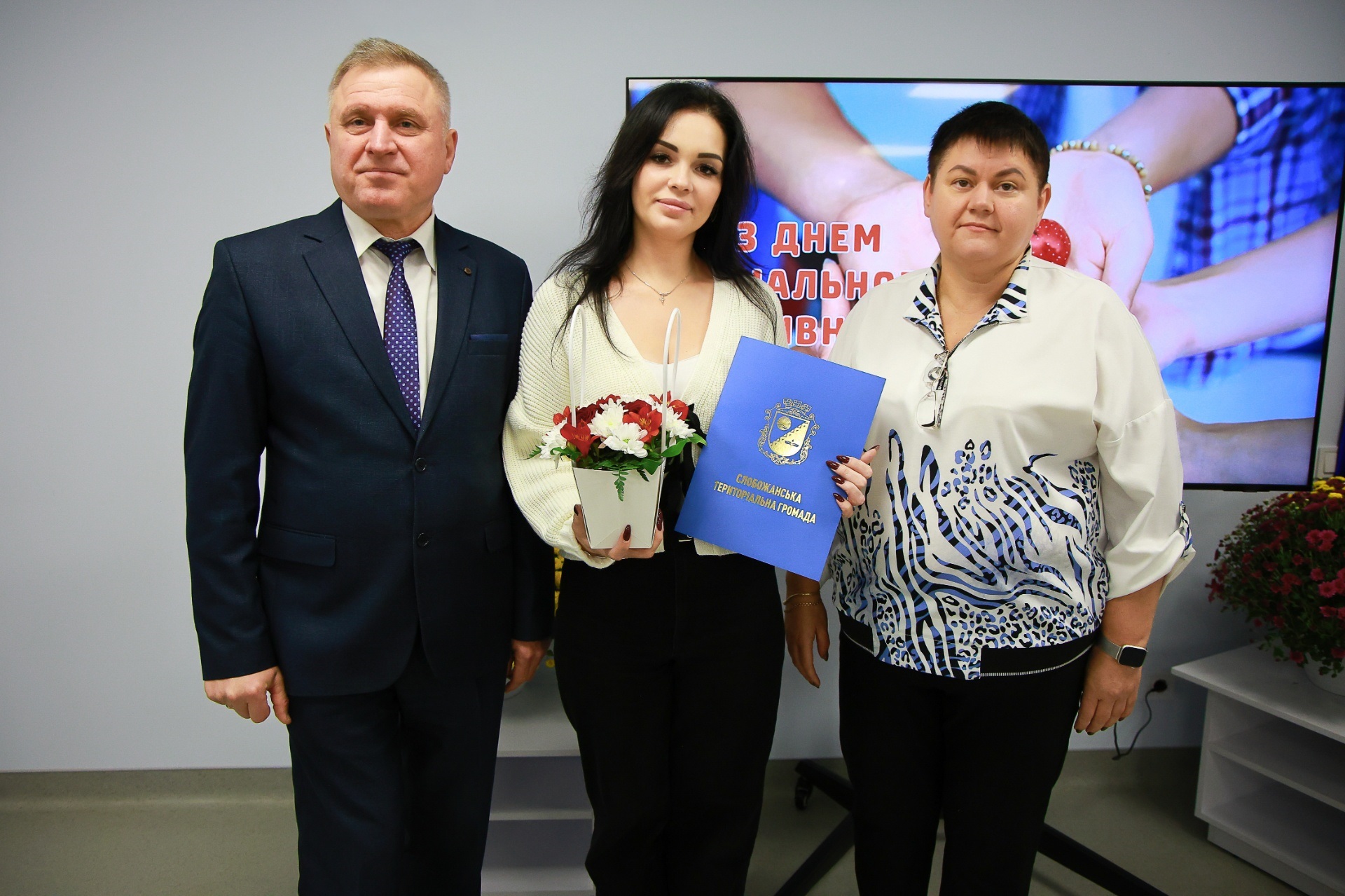 Теплі слова подяки та щирі оплески лунали на адресу тих, хто щодня робить добро без зайвих слів: працівників Управління соціального захисту населення Слобожанської селищної ради, Центру надання соціальних послуг, фахівців із соціальної роботи, працівників служби у справах дітей, координаторів роботи з внутрішньо переміщеними особами, адміністраторів соціальних програм і виплат, а також усіх соціальних працівників, які підтримують людей поважного віку, родини у складних життєвих обставинах, осіб з інвалідністю та дітей, які потребують турботи й уваги.