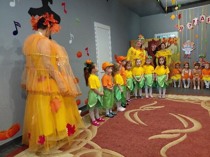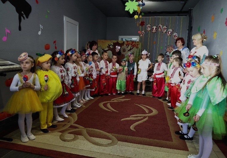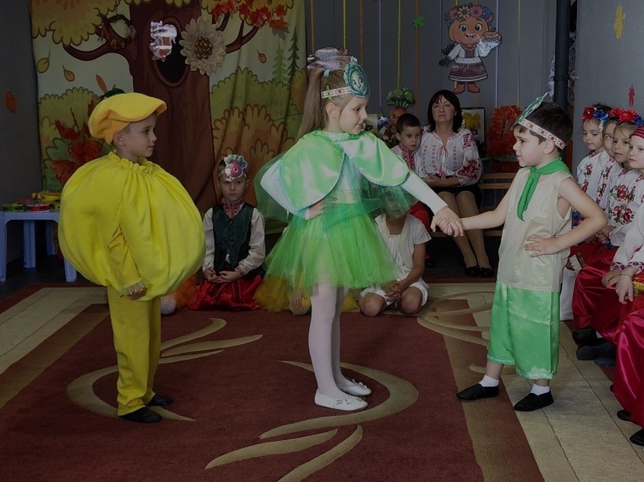 Танці з листочками, пісні, вірші та ігри зробили свято динамічним та цікавим. Яскраві костюми та красивий осінній декор музичної зали доповнили святкову атмосферу.