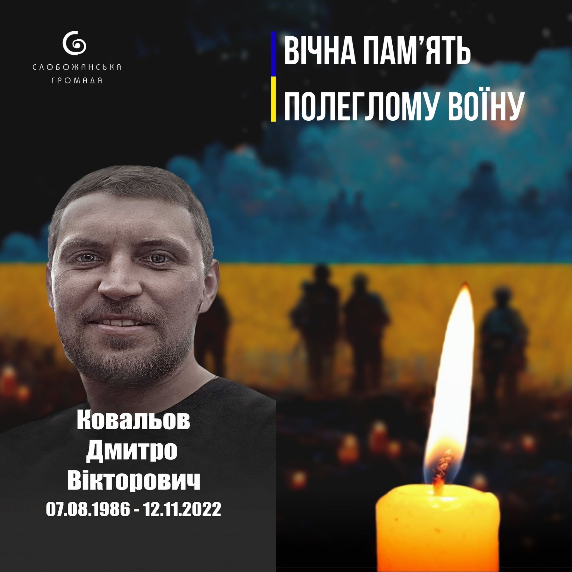 Сьогодні, 12 листопада, минає третя річниця, як Слобожанська громада втратила мужнього воїна, захисника та Героя Дмитра Ковальова. Це ім’я назавжди закарбоване в історії боротьби за незалежність України. Світла та вічна пам’ять Герою! Його самопожертва залишиться в серці кожного з нас назавжди.
