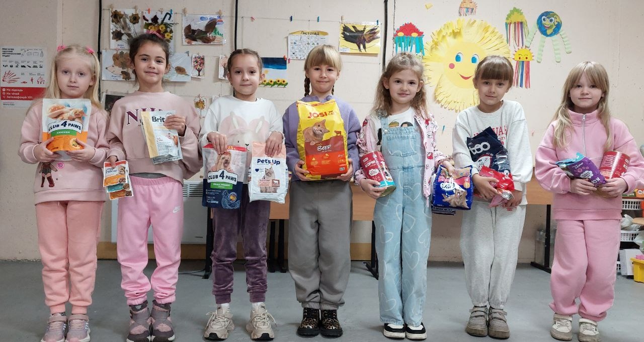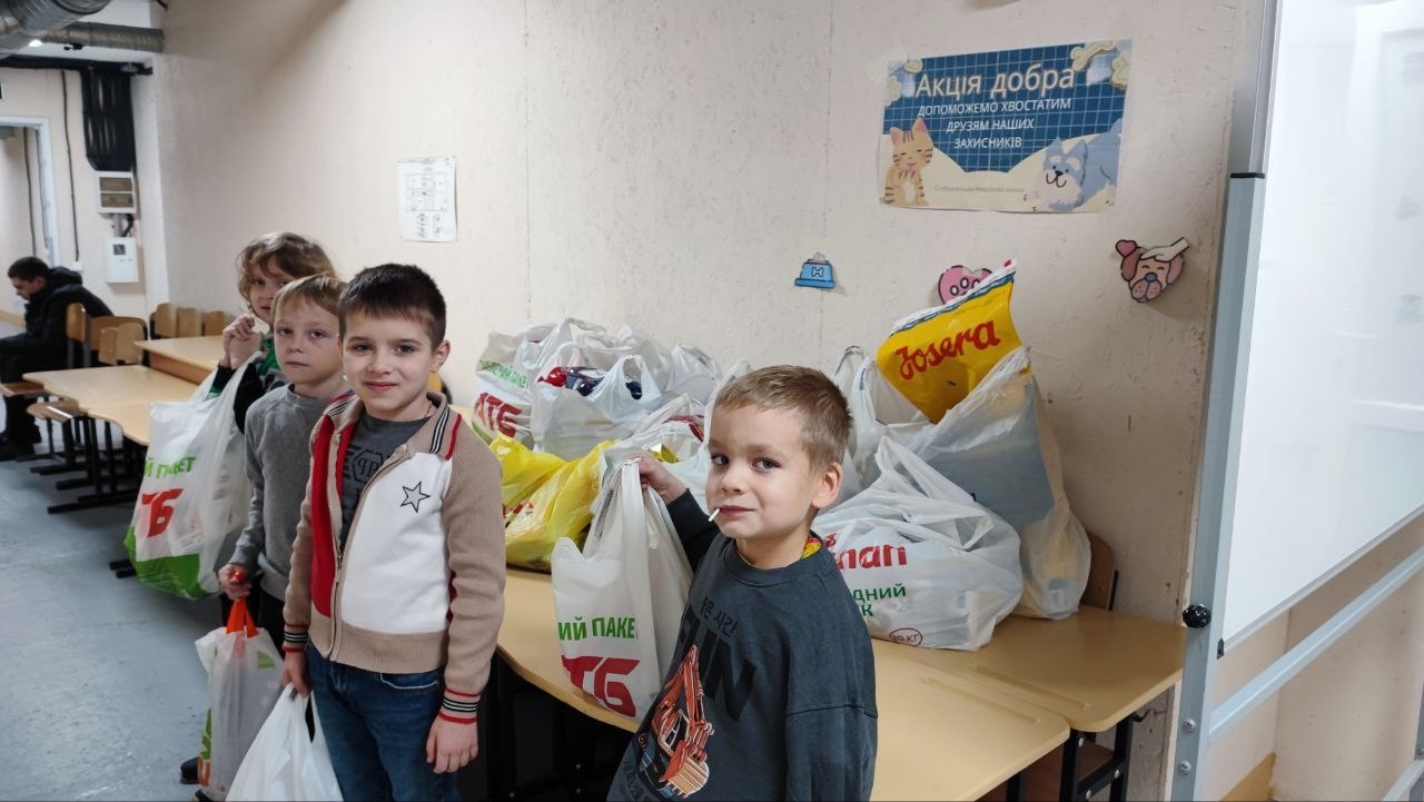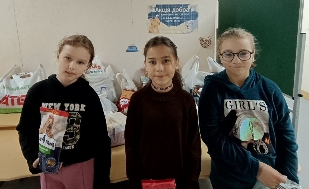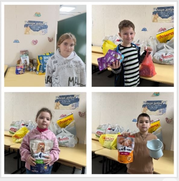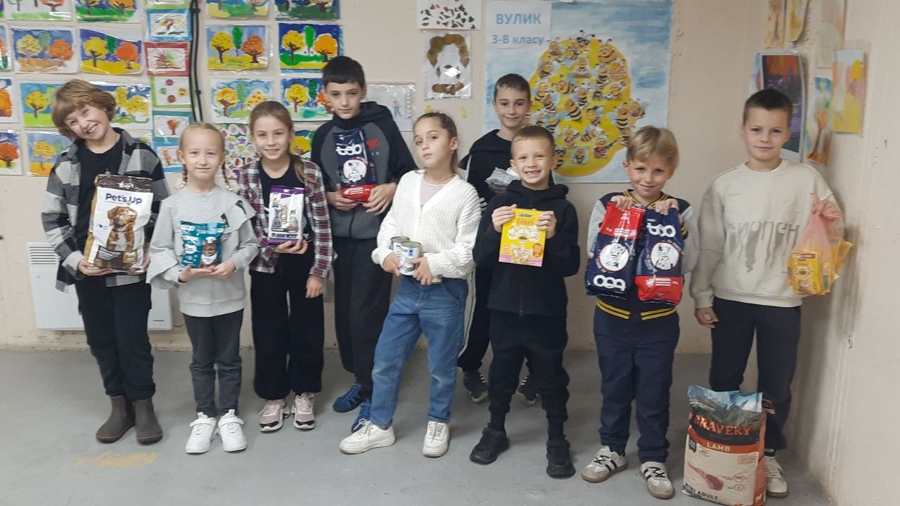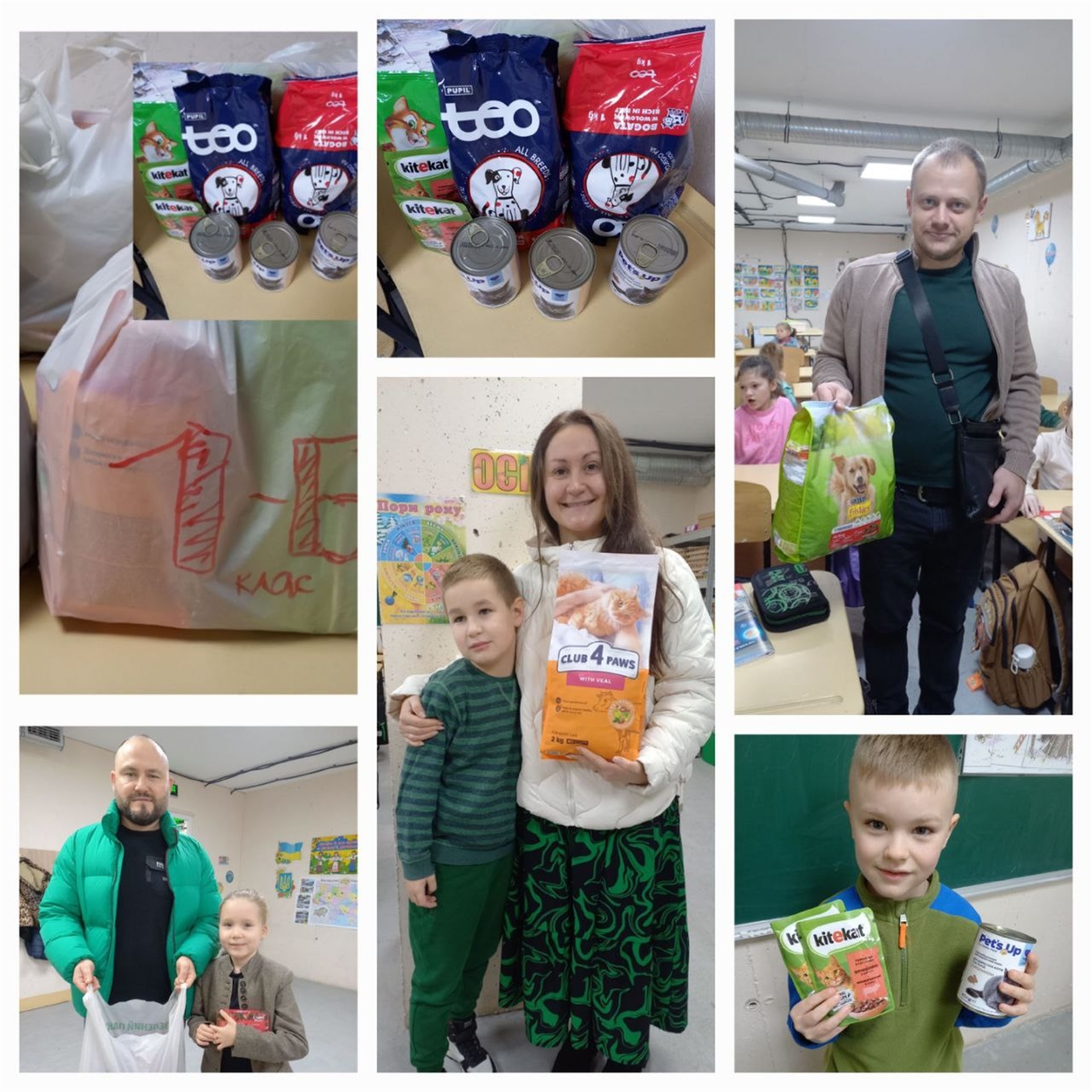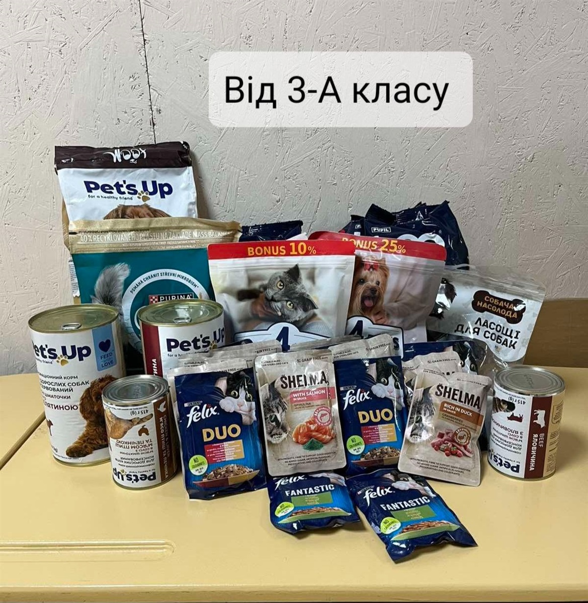 Учні школи, їхні батьки та вчителі з ентузіазмом долучилися до збору допомоги. Діти охоче приносили корм, вітаміни та інші необхідні речі для безпритульних собак і котів. Кожен маленький внесок став великим актом любові та турботи, спробою зігріти й підтримати тих, хто сьогодні є найбільш вразливим. Це свідчить про те, що навіть у юному віці діти розуміють важливість гуманності та співчуття.