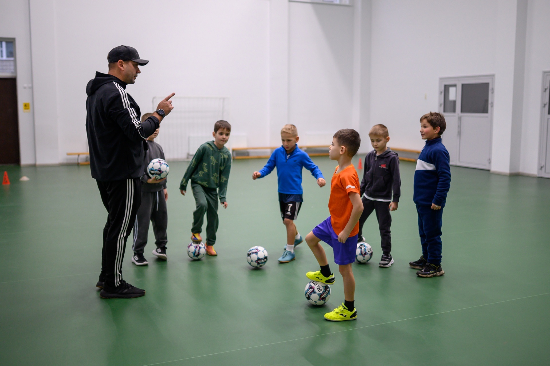 Під керівництвом досвідченого тренера Костянтина Короля юні спортсмени розпочали з енергійної розминки та швидкого знайомства. Основна частина заняття була насиченою: діти відпрацьовували точність передач, освоювали ведення м’яча та розвивали швидкість за допомогою інтенсивних ривків.