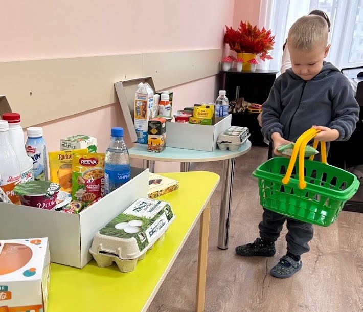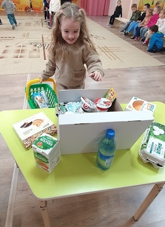 Гра «Збери продукти з молока»: Вихованці, об'єднавшись у команди, практикувалися в самостійному відокремленні молочних продуктів від інших муляжів, що успішно перевірило їхню уважність.