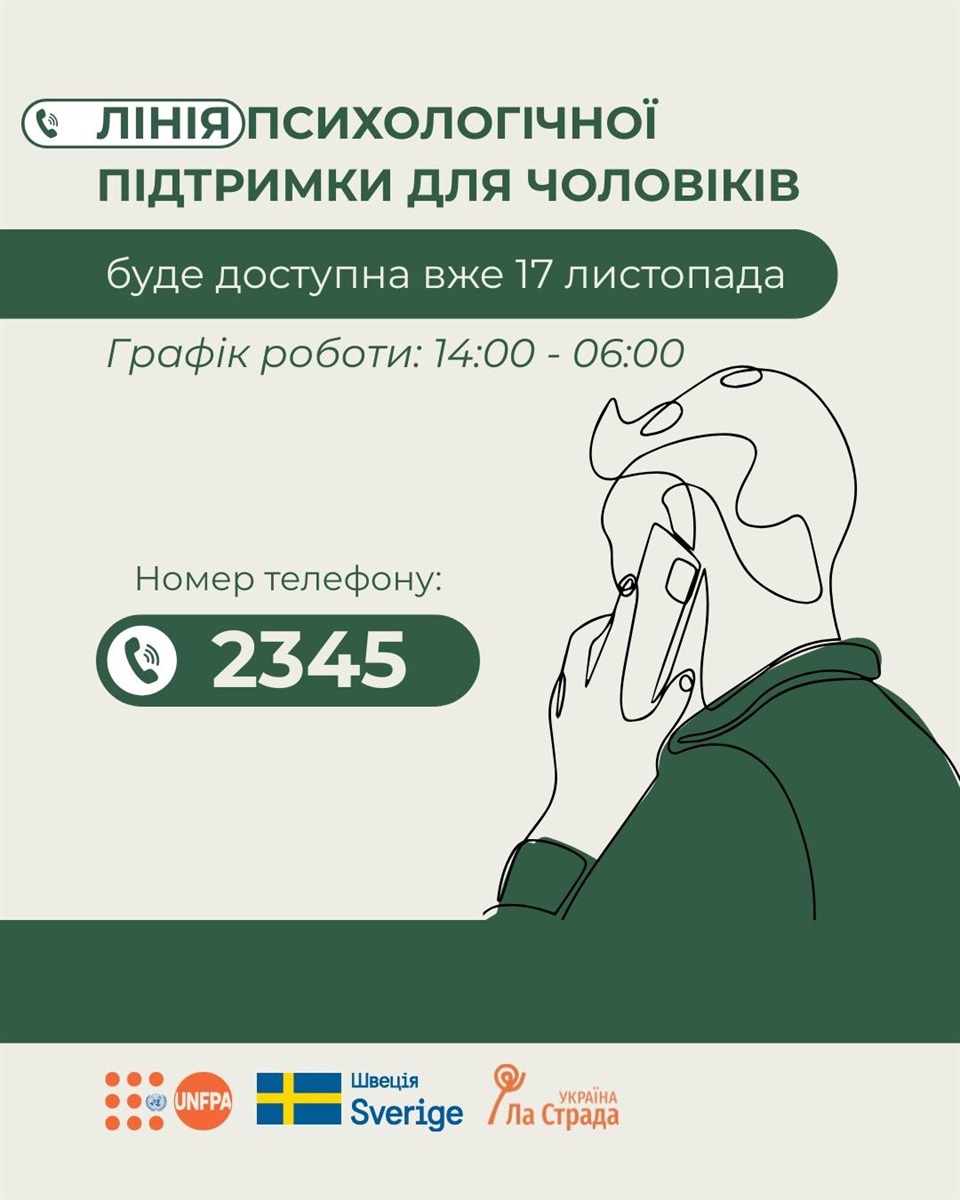 З 17 листопада 2025 року UNFPA, Фонд ООН у галузі народонаселення в Україні, за підтримки Швеції та у співпраці з ГО «Ла Страда – Україна» відновлює роботу національної Лінії психологічної підтримки для чоловіків.