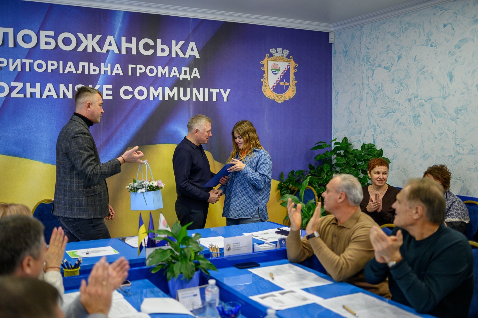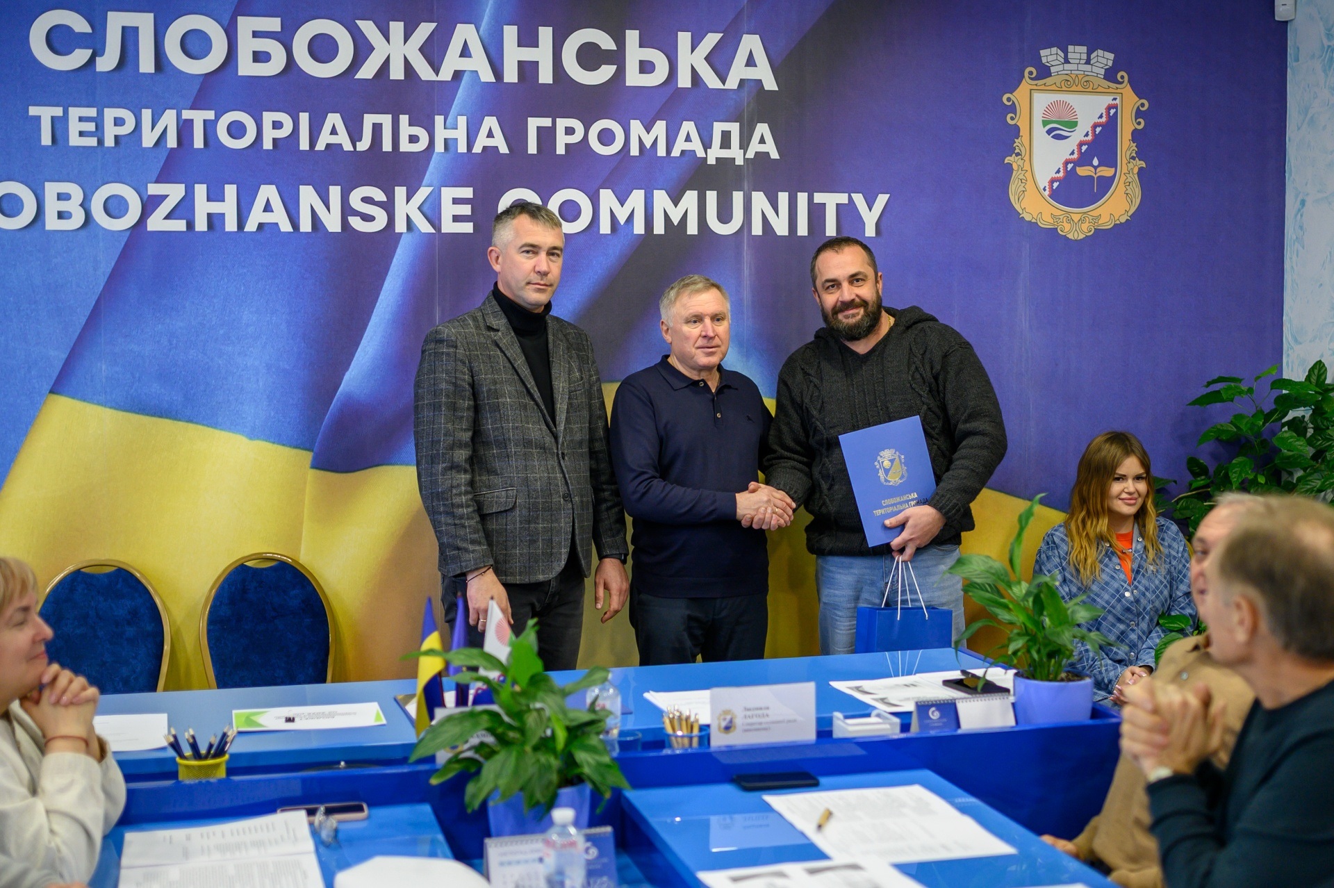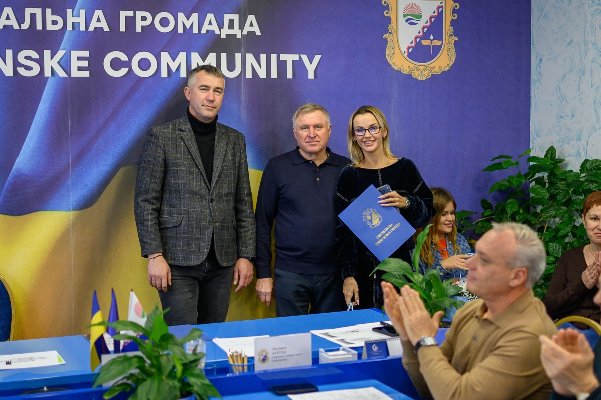 Перед початком засідання за сумлінну працю, високі виробничі показники, ефективне виконання ключових завдань в інтересах громади та з нагоди 25-річчя заснування Комунального підприємства «Керуюча компанія «Господар» Слобожанської селищної ради Подяками селищного голови нагороджено начальника КП «Керуюча компанія «Господар» Олега Коновала, заступника начальника Олексія Литвиненка, головного бухгалтера Катерину Ткач, бухгалтера Олену Білей, економіста Владиславу Тверітникову, інженера з охорони праці Світлану Шевченко.