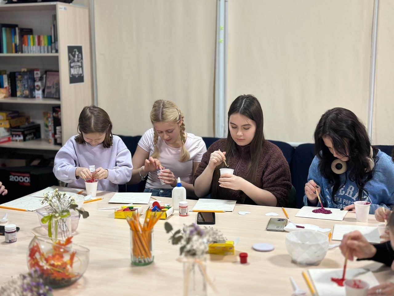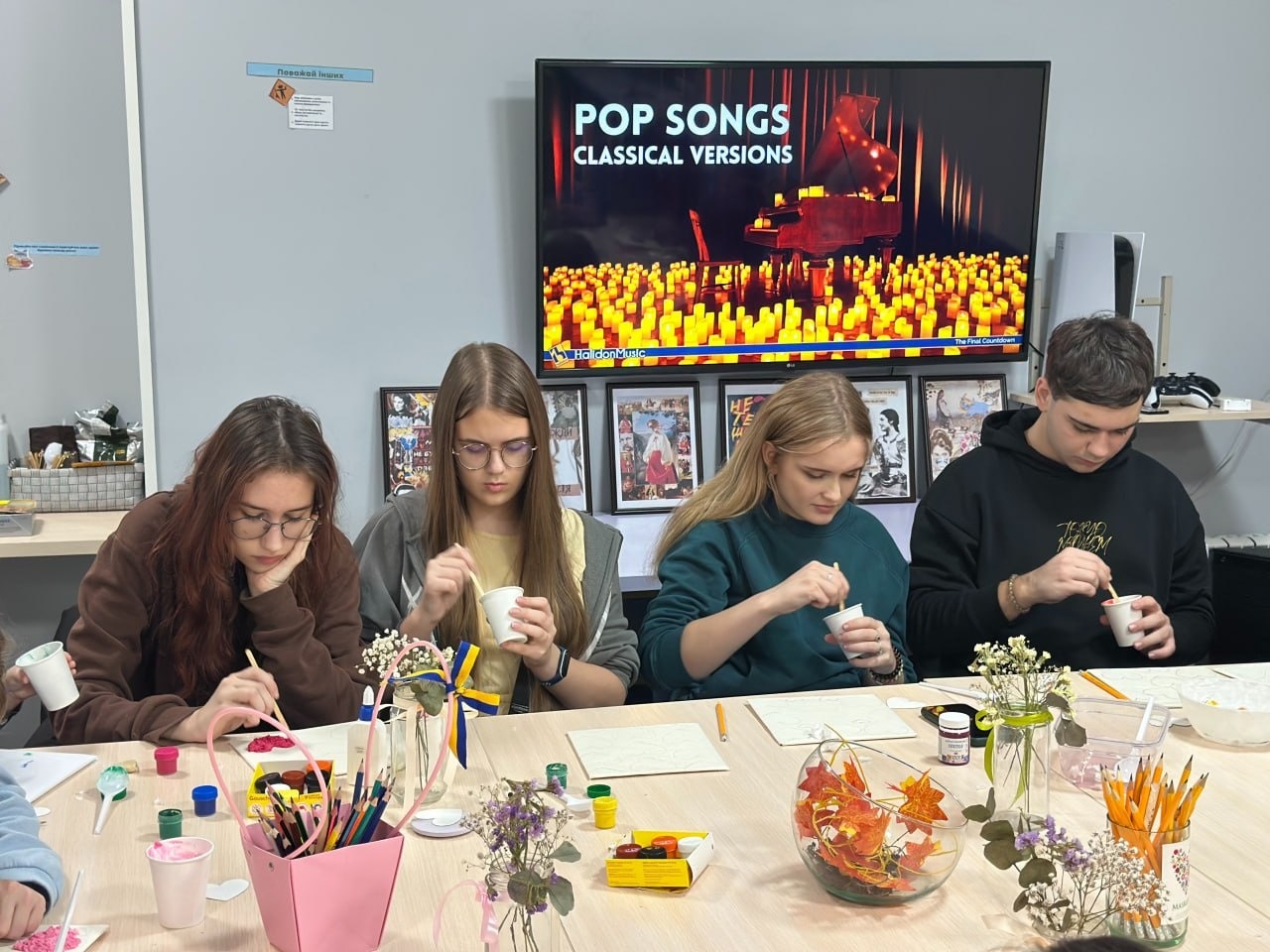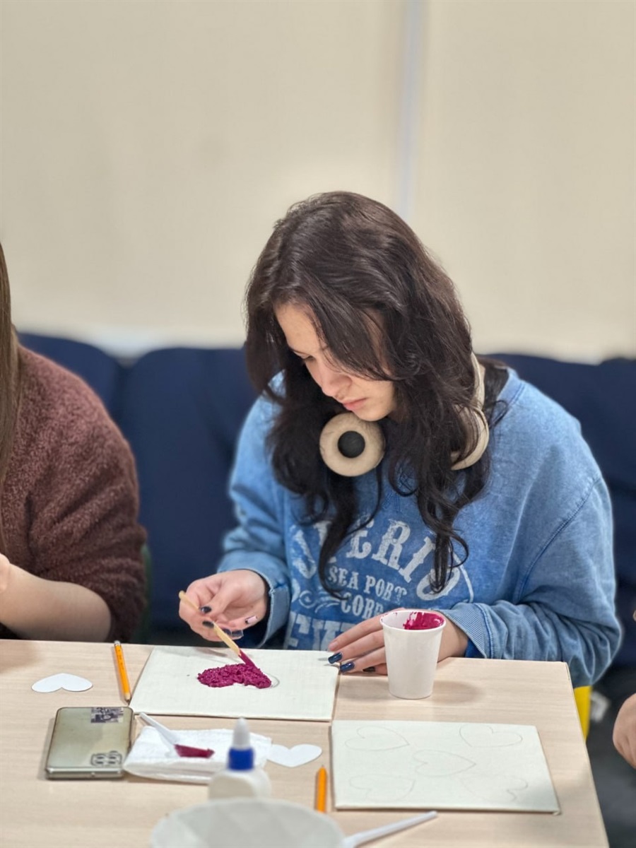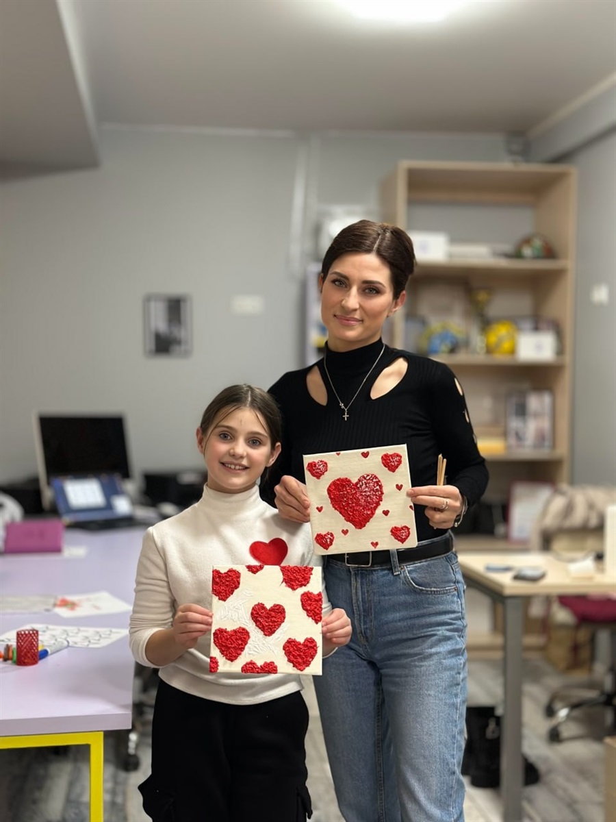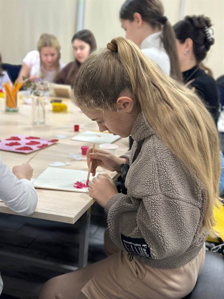 Учасники занурилися у світ текстурного живопису, відкриваючи для себе безмежні можливості об’ємної техніки. Використовуючи спеціальні пасти та фарби, кожен створив вражаюче фактурні полотна – роботи, що передають любов, яскраві емоції та особистий внутрішній світ.