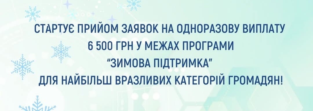Відділ обслуговування громадян № 6 (сервісний центр) управління обслуговування громадян Головного управління Пенсійного фонду України в Дніпропетровській області повідомляє, що з 21.11.2025 року українці можуть подати заявку на одноразову виплату 6 500 грн у межах програми «Зимова підтримка».