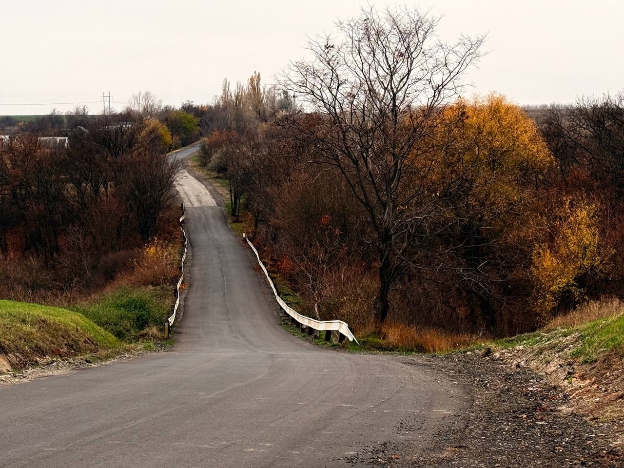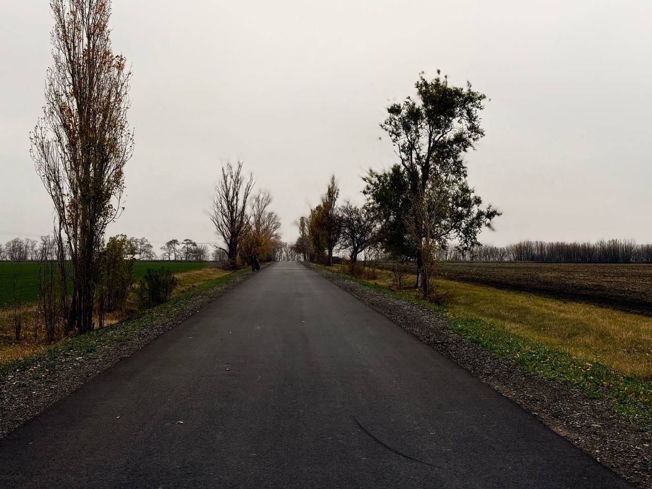 На початковому етапі було виконано розчищення та вирівнювання узбіч грейдером, а також підготовку основи дорожнього полотна. Основний комплекс робіт включав укладання нового шару асфальтобетонного покриття на під’їзді до села та проведення ямкового ремонту в його межах для усунення локальних дефектів.