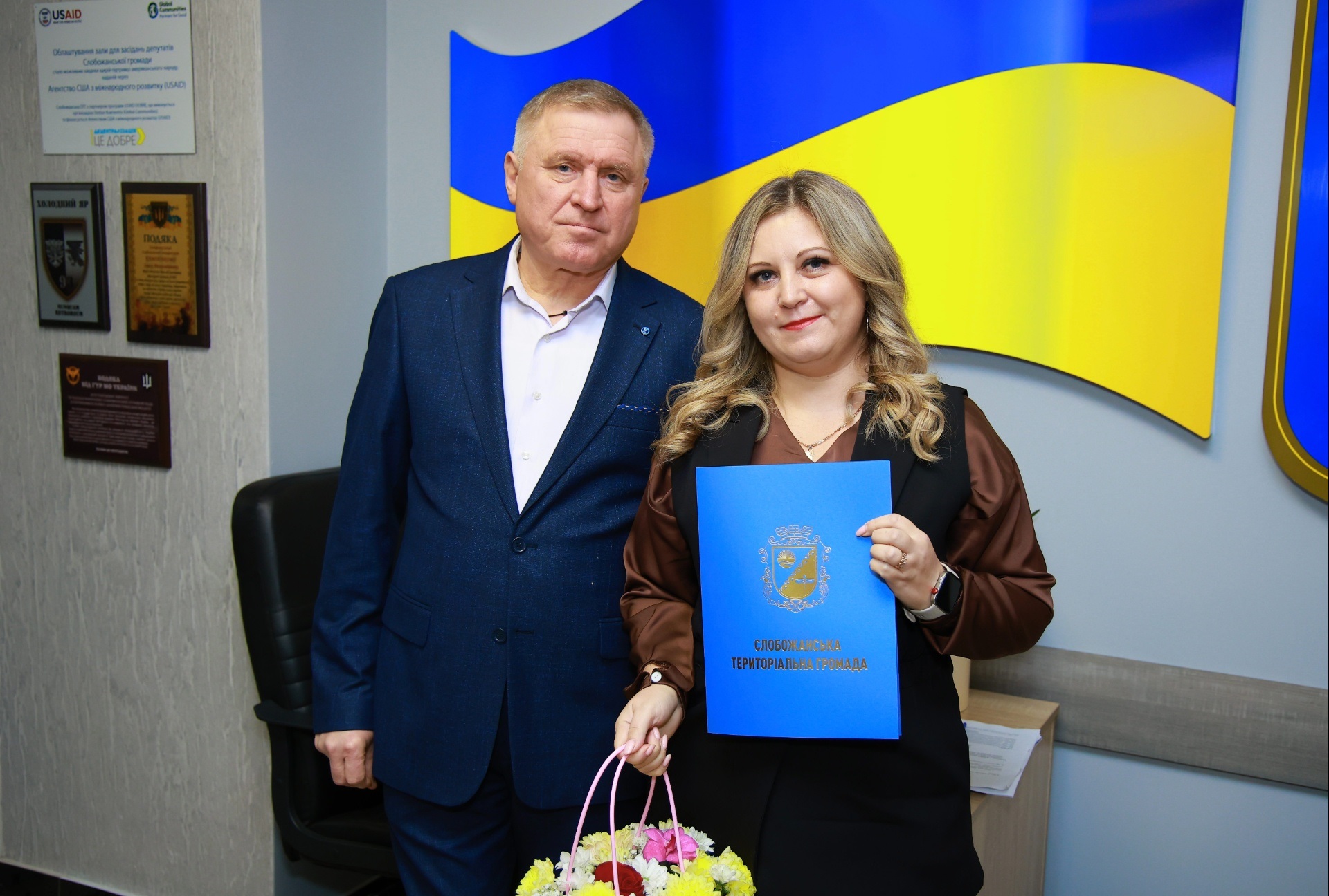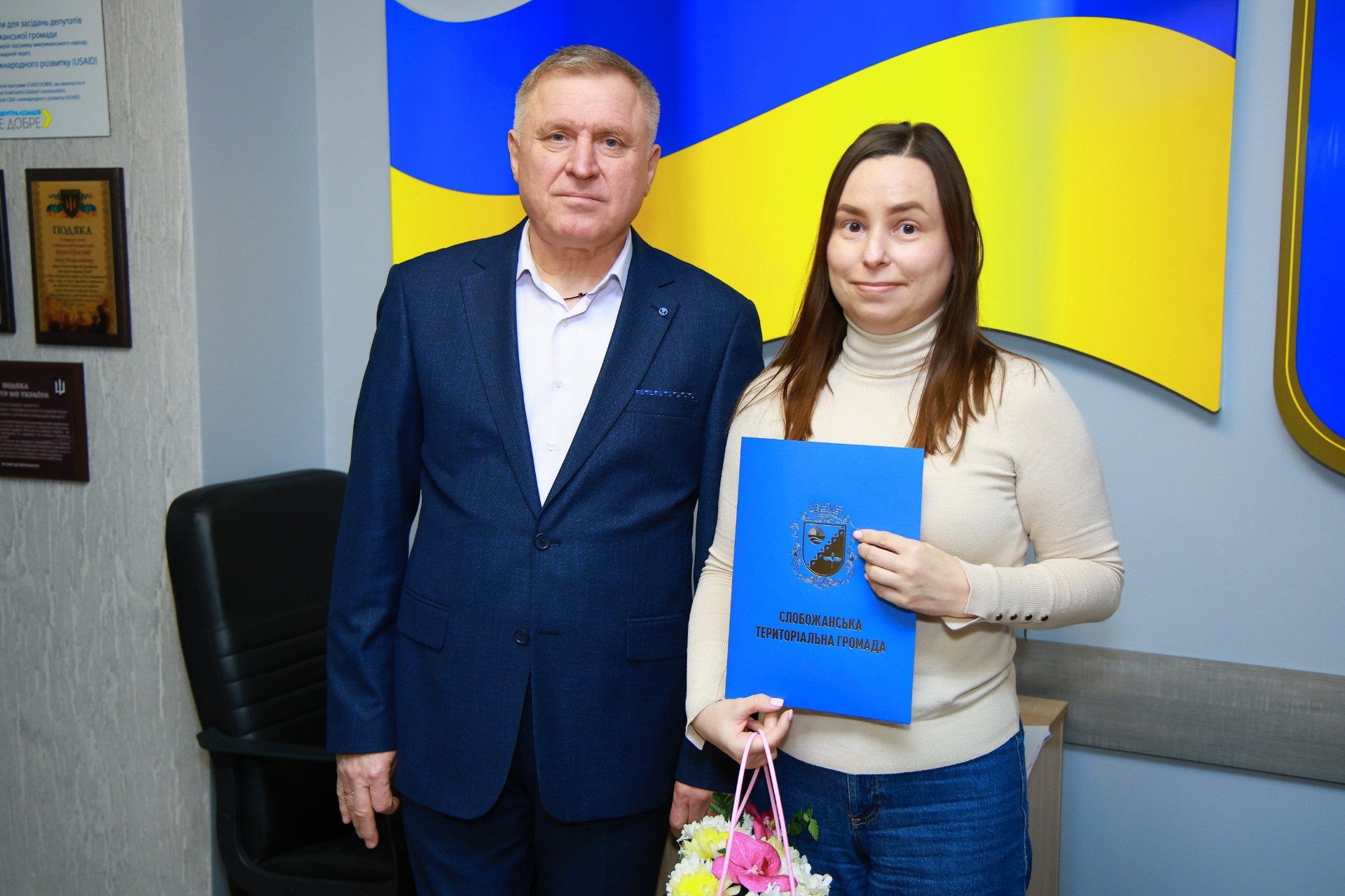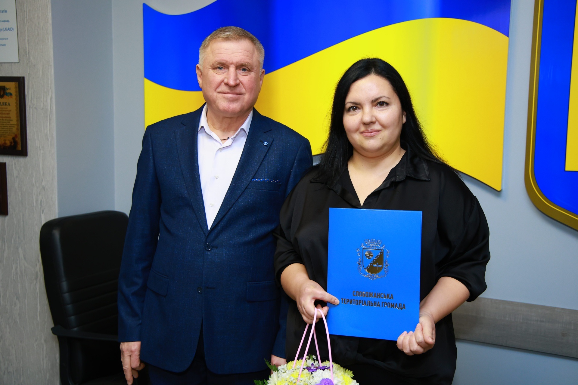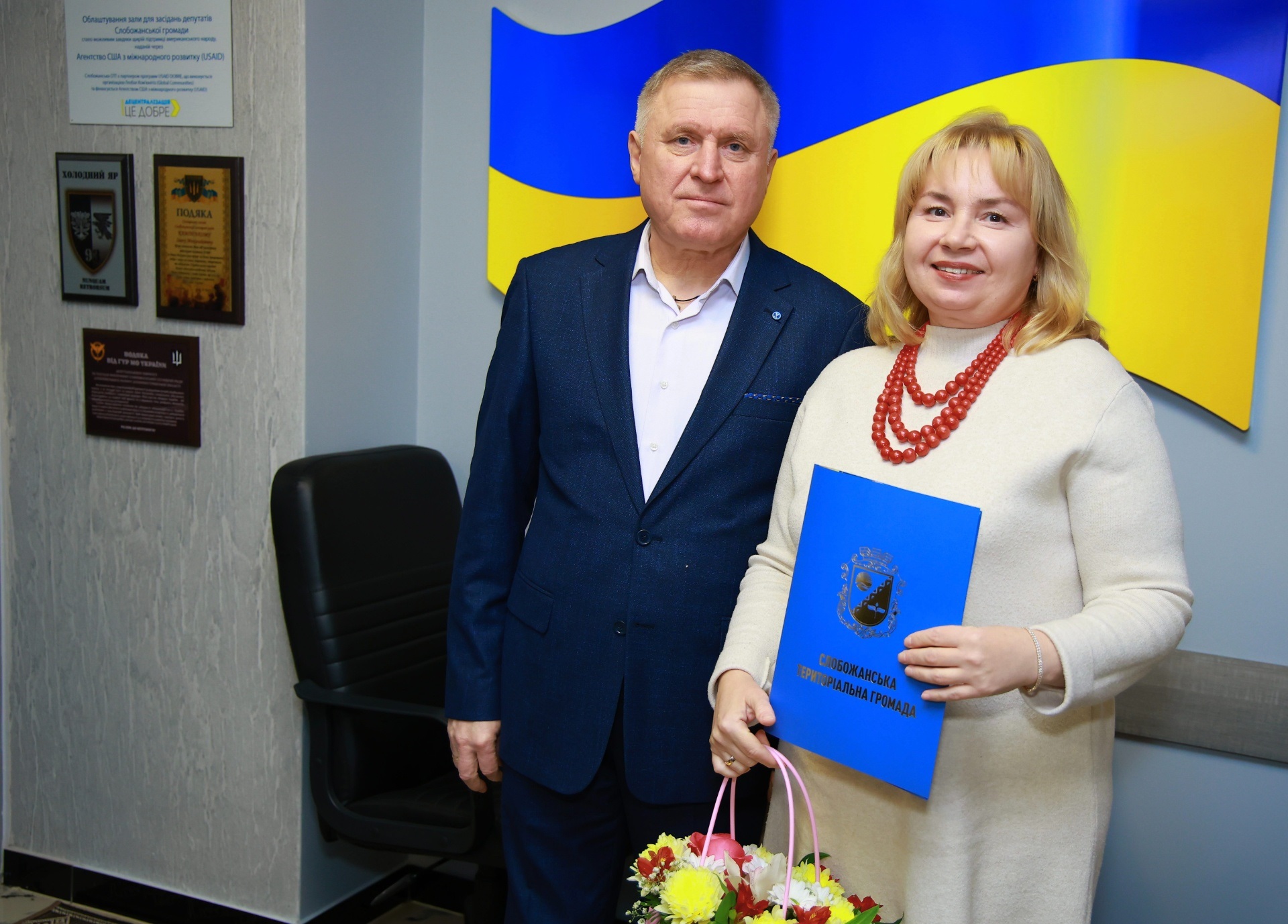 За високий професіоналізм та відданість інтересам громади було присвоєно звання «Почесний громадянин Слобожанської селищної територіальної громади» секретарю селищної ради (виконавчого комітету) Людмилі Лагоді.