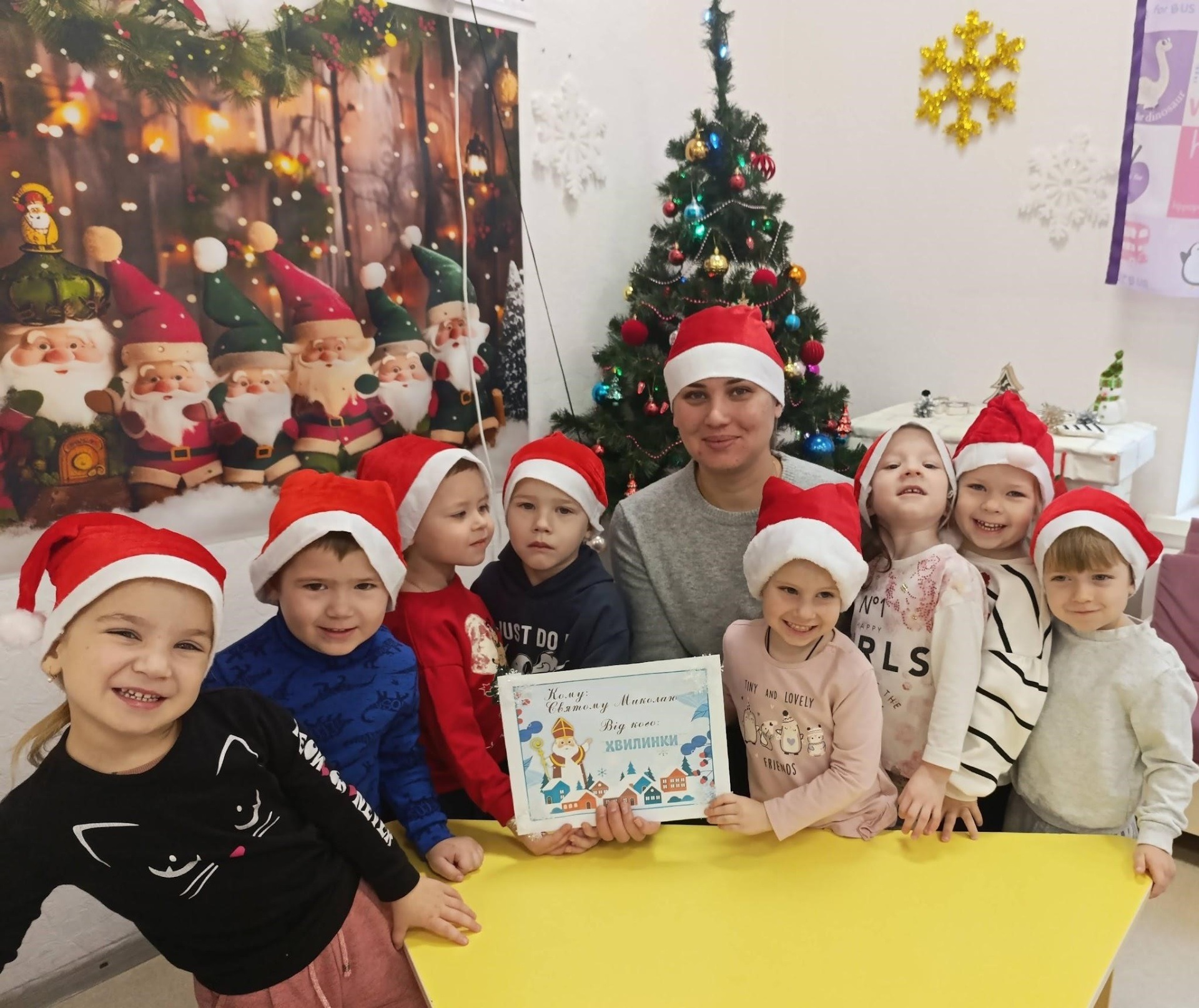 На згадку про свою чарівну подорож і як вияв вдячності за добрі чудеса вихованці прикрасили будинок Святого Миколая і разом із казковими героями розваги закружляли у веселому хороводі.
