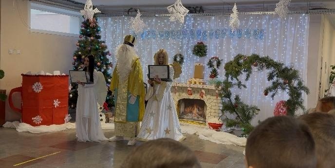 Для учнів 1 – 11 класів педагоги та старшокласники підготували яскраву виставу «Святковий патруль». Казкові персонажі та веселі сцени подарували дітям справжнє відчуття дива. Головним гостем свята став Святий Миколай, який привітав школярів та вручив солодкі подарунки учням 1 – 5 класів.