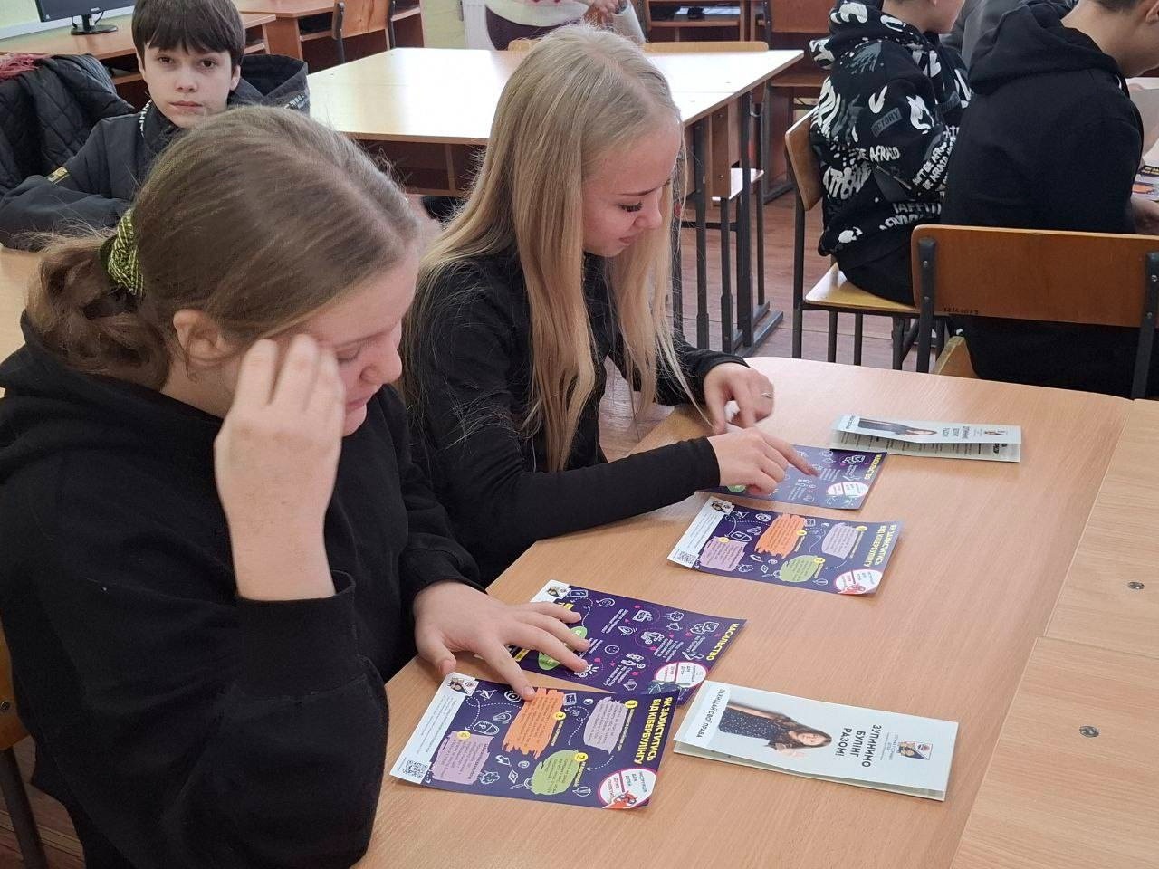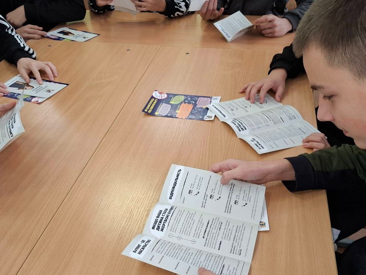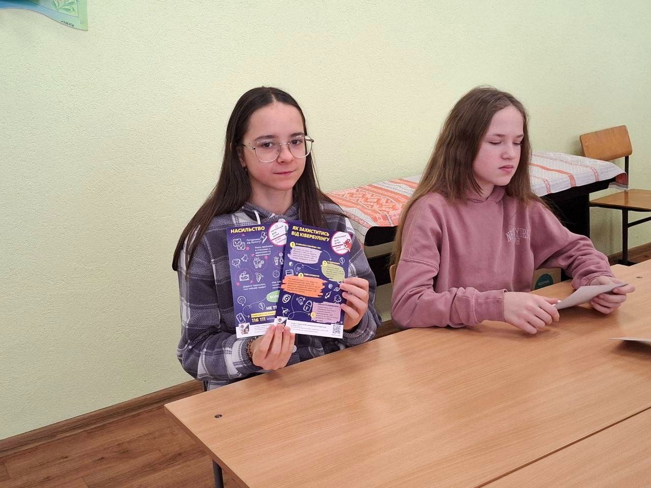 Діти отримали інформаційні буклети «Зупинимо булінг разом» та спеціальні інструкції про алгоритм дій у випадках насильства та кібербулінгу.