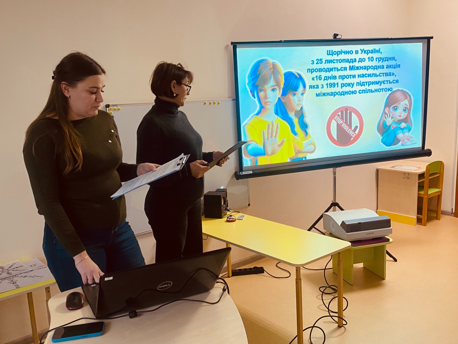 У рамках Міжнародної акції «16 днів проти насильства», яка проводилася з метою привернути увагу педагогів до цієї проблеми та активізувати боротьбу з нею, у закладі дошкільної освіти «Дивосвіт» відбувся важливий та ґрунтовний тренінг під назвою «16 днів проти насильства: знаємо, діємо, не мовчимо».