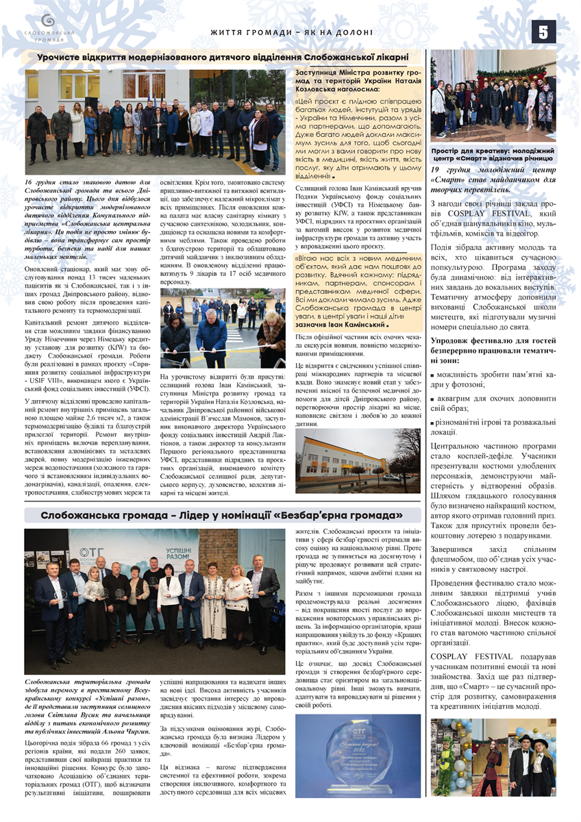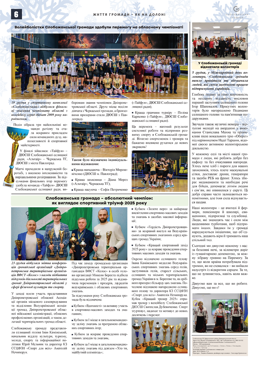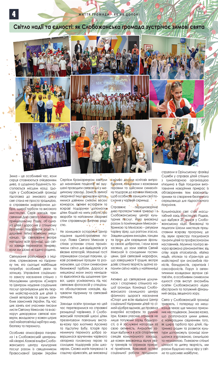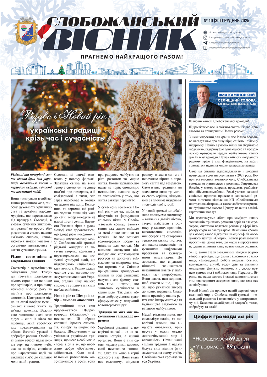 Грудневий випуск традиційно об’єднує ключові підсумки місяця, стратегічні рішення для майбутнього та матеріали, присвячені різдвяним і новорічним святам у Слобожанській громаді.