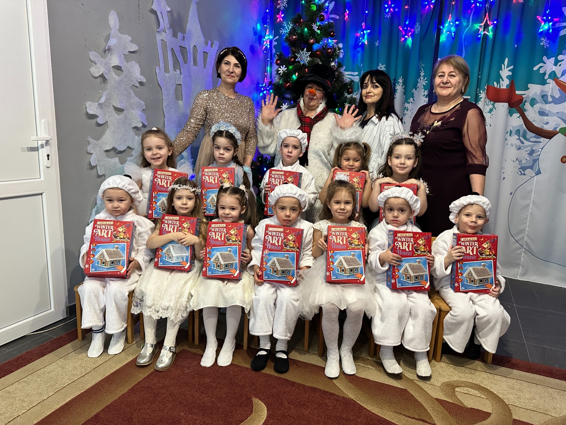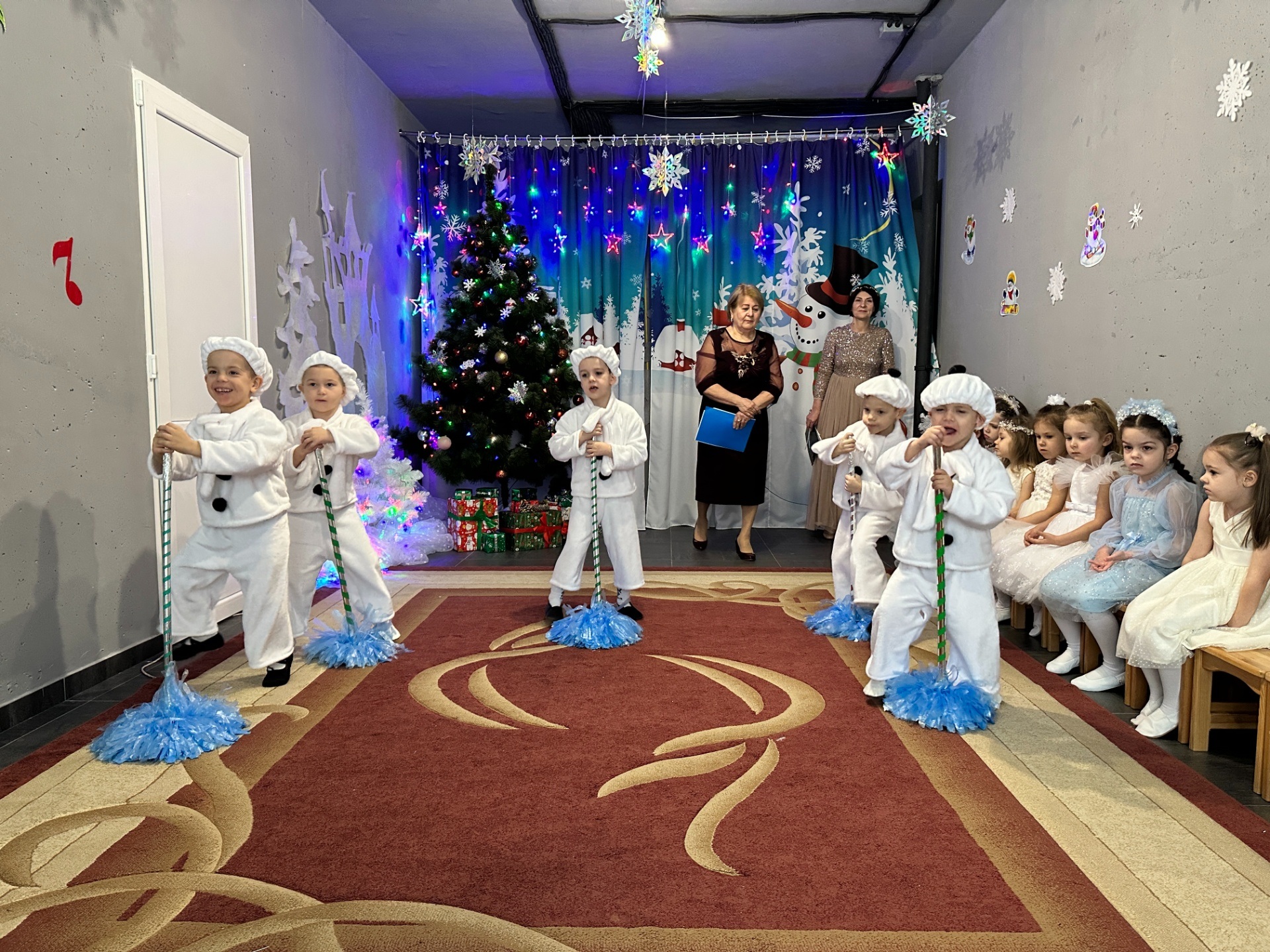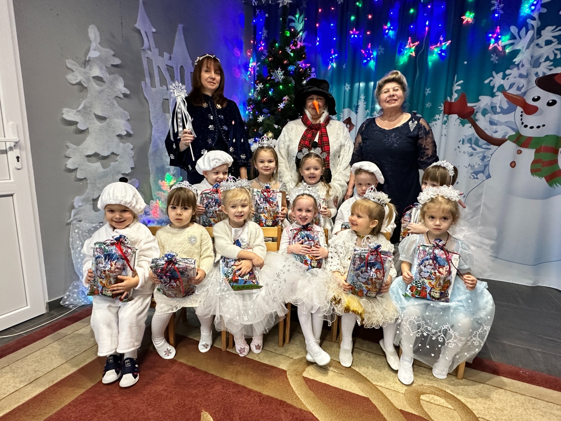 Для малят молодших та середніх груп свято розпочалося з візиту чарівної Феї, яка подарувала дітям атмосферу справжнього дива. Малюки з радістю брали участь в іграх, танцях та співах, наповнюючи залу щирими усмішками й отримуючи свої перші новорічні подарунки.