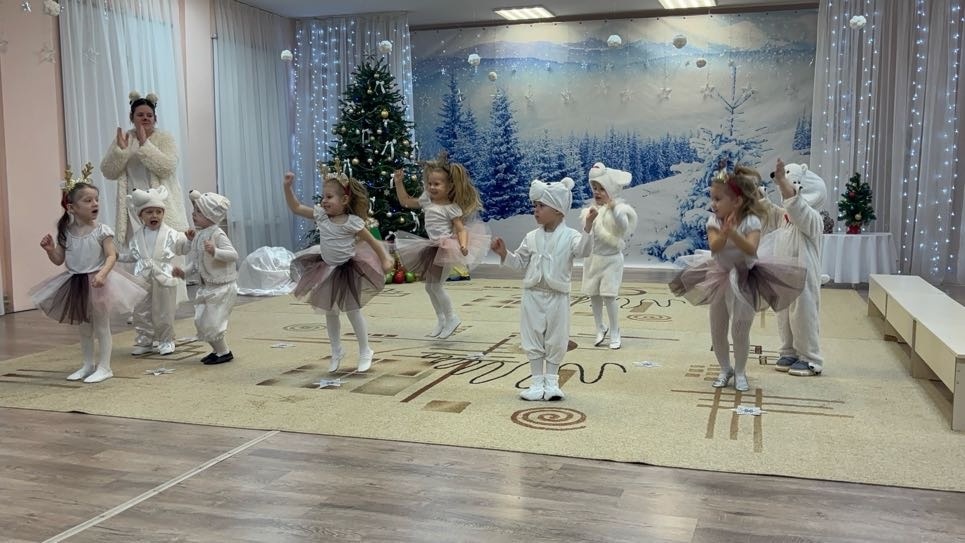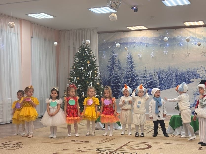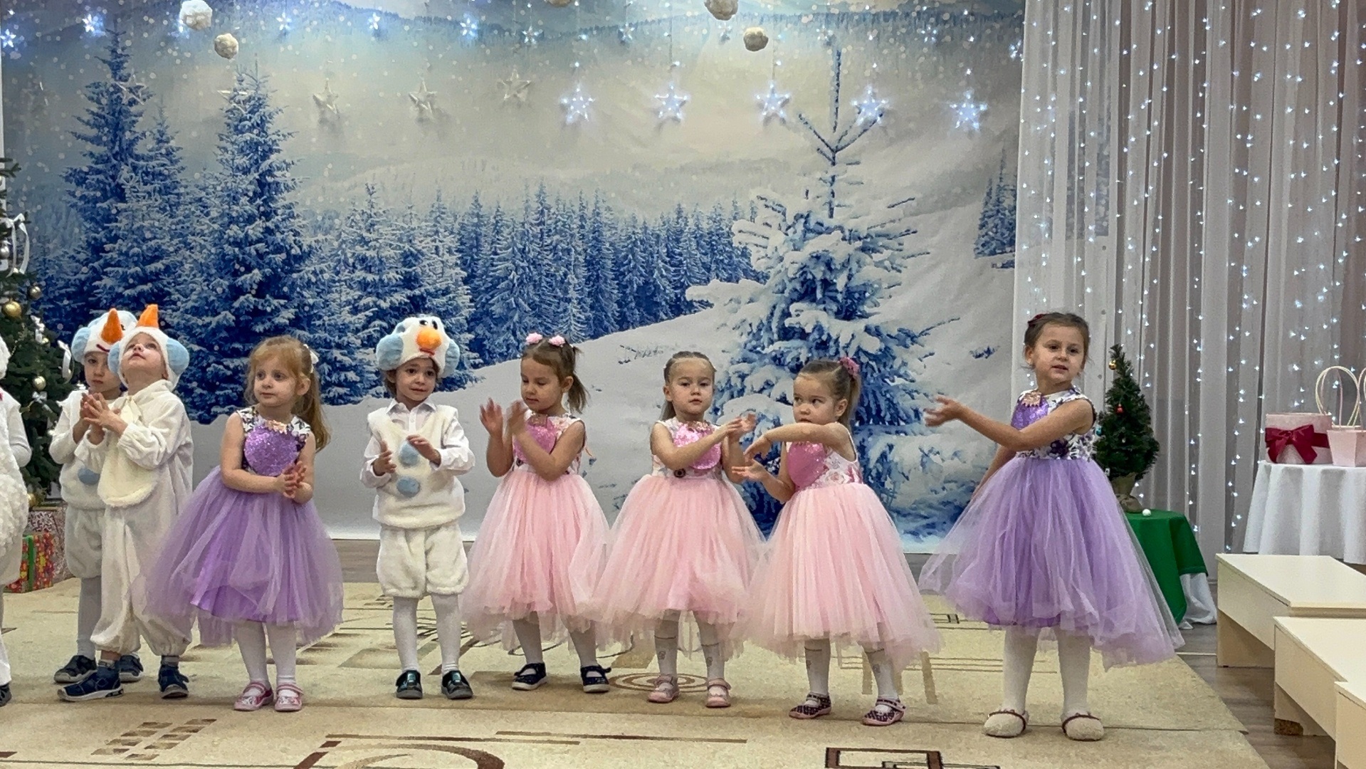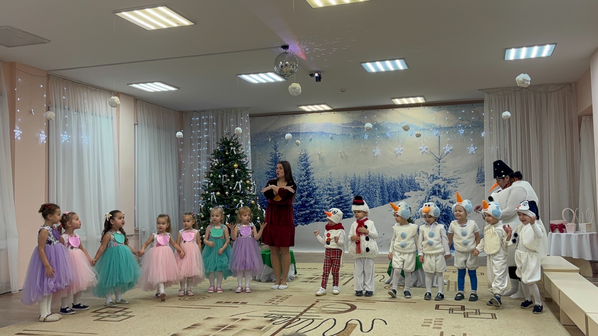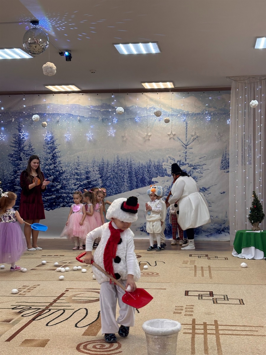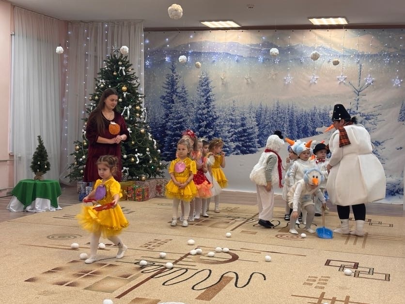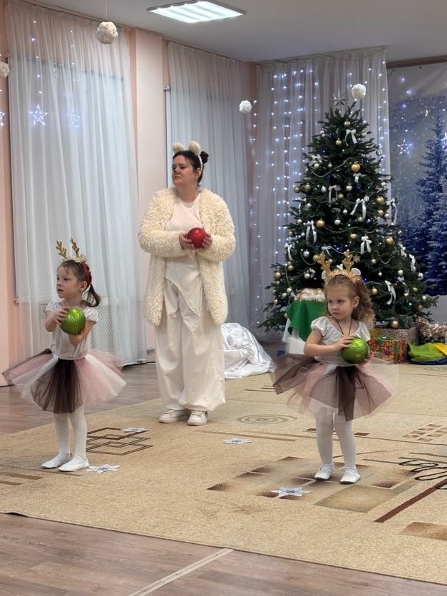 Не менш яскраво розгорнулася історія у групах «Перлинки» та «Краплинки». Тут Сніговик та Ялинкова Іграшка влаштували справжнє дружнє змагання за право називати свою ялинку найкращою. Хлопчики-сніговички та дівчатка-іграшки завзято допомагали героям: вони збирали сніжки лопатами, декламували вірші та прикрашали пухнасті гілки. Коли ж виявилося, що малим ялинкам бракує святкового сяйва, на допомогу поспішила Зимонька. Вона запалила яскраві вогники, об’єднала всіх у веселому хороводі та провела запальну руханку в пухнастих білосніжних рукавичках.