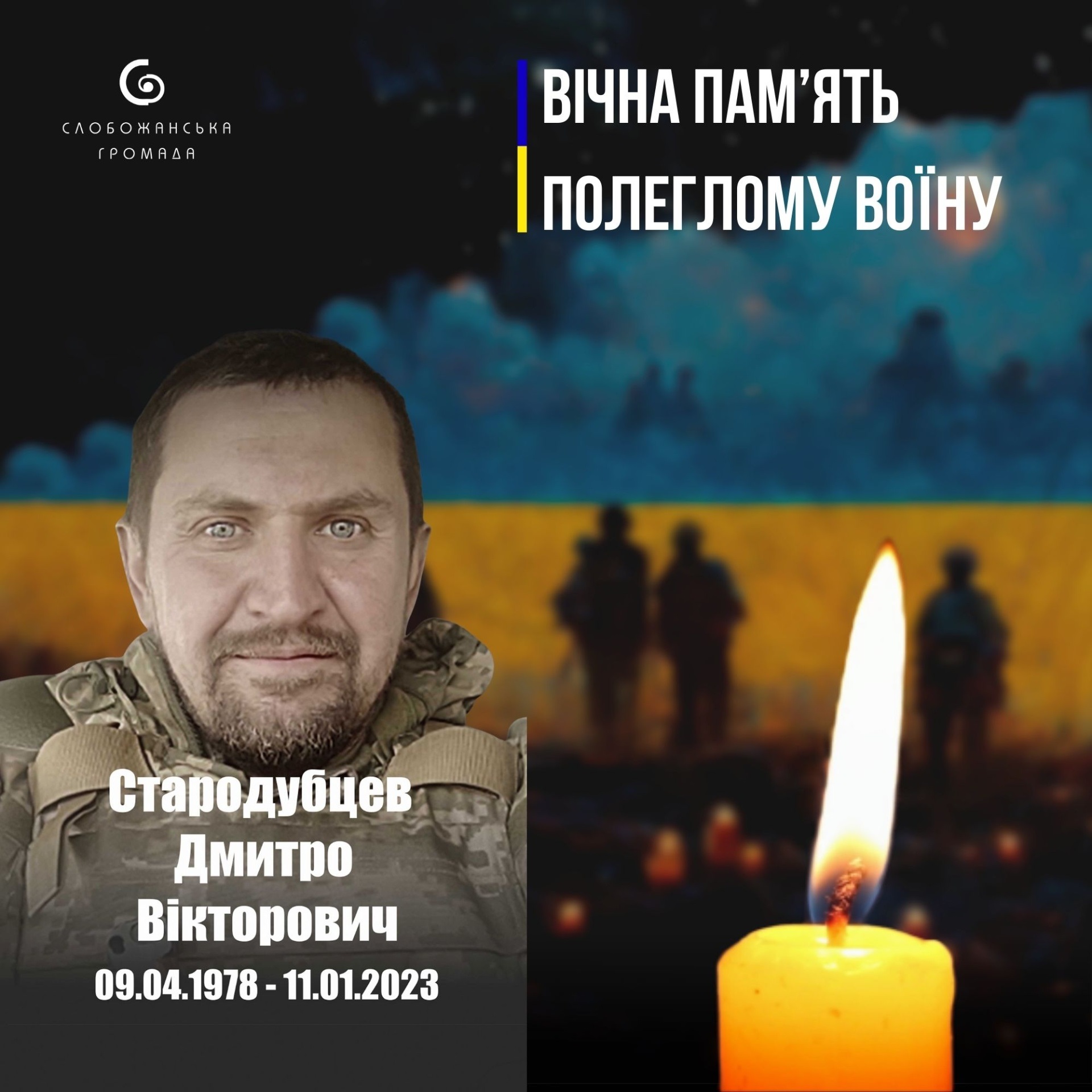 Сьогодні, 11 січня, минає третя річниця, як Слобожанська громада втратила мужнього воїна, захисника та Героя Дмитра Стародубцева. Це ім’я назавжди закарбоване в історії боротьби за незалежність України. Світла та вічна пам’ять Герою! Його самопожертва залишиться в серці кожного з нас назавжди.
